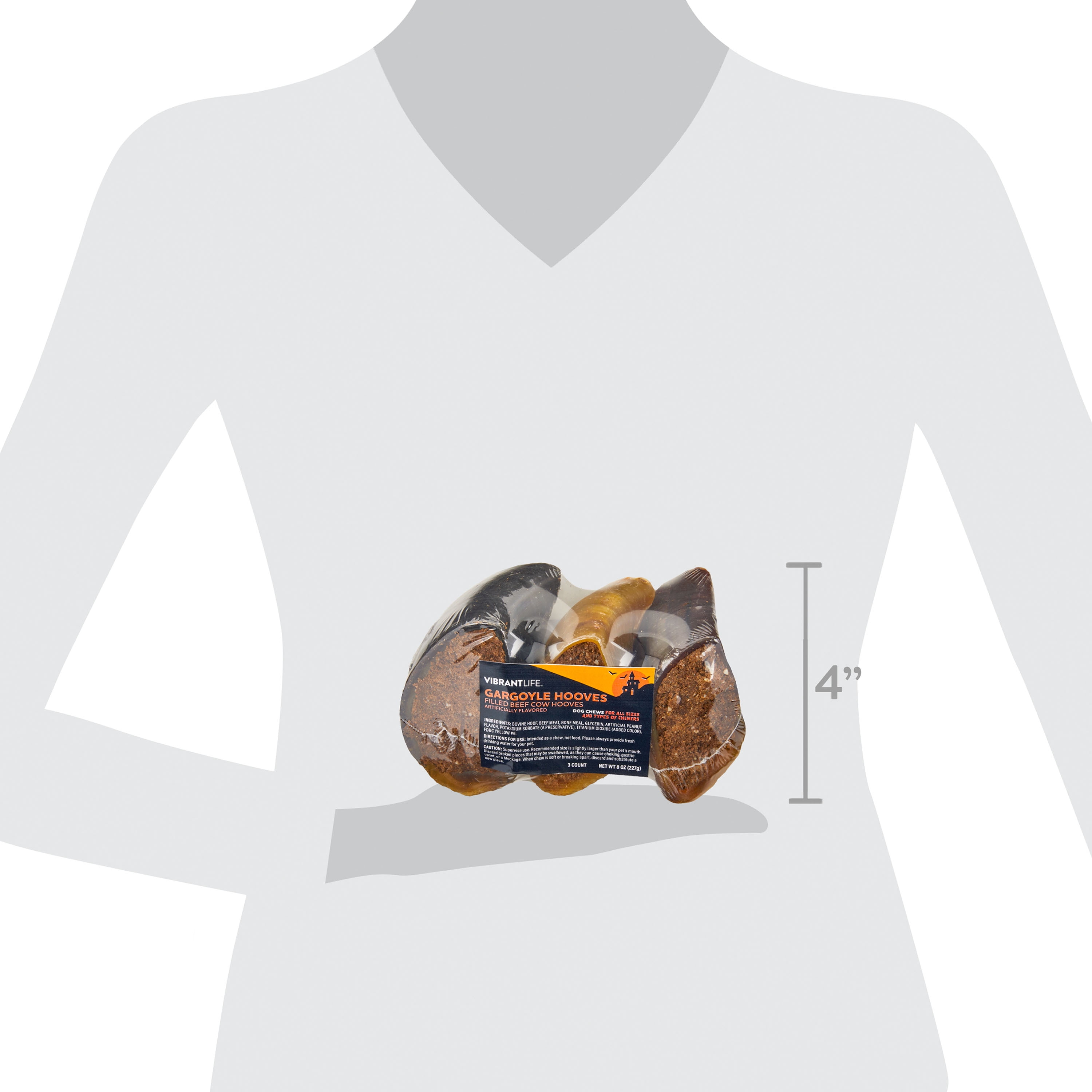 Our Vibrant Life Gargoyle Hooves Filled Beef Cow Hooves Dog Chews are the perfect way to get your dog in on the Halloween festivities! A pack of delicious chews for any-sized dog, our gargoyle hooves are not only the kind of treat dogs love, with a delicious, savory flavor and hard, crunchy texture, but they’re also a festive addition to your Halloween celebrations! Dress your dog in one of the many Halloween costumes available in our Vibrant Life collection, have your camera ready, and then hand them a gargoyle hoof to create fun memories that will last a life time. You’ll get a new photo to display on the wall and your dog will get countless hours of chewing enjoyment! Treat your dog to a very happy Howlloween with our Vibrant Life Gargoyle Hooves Filled Beef Cow Hooves Dog Chews.