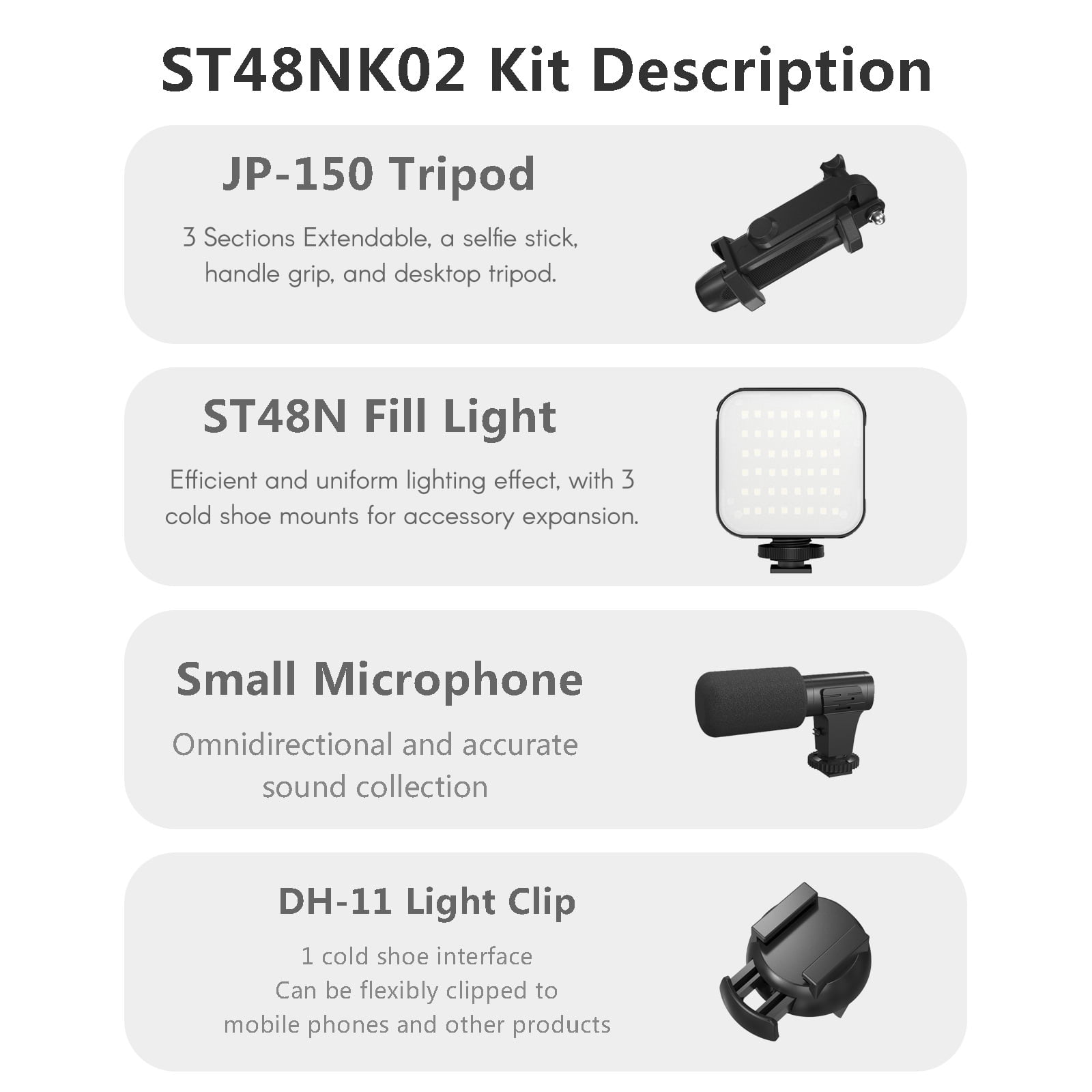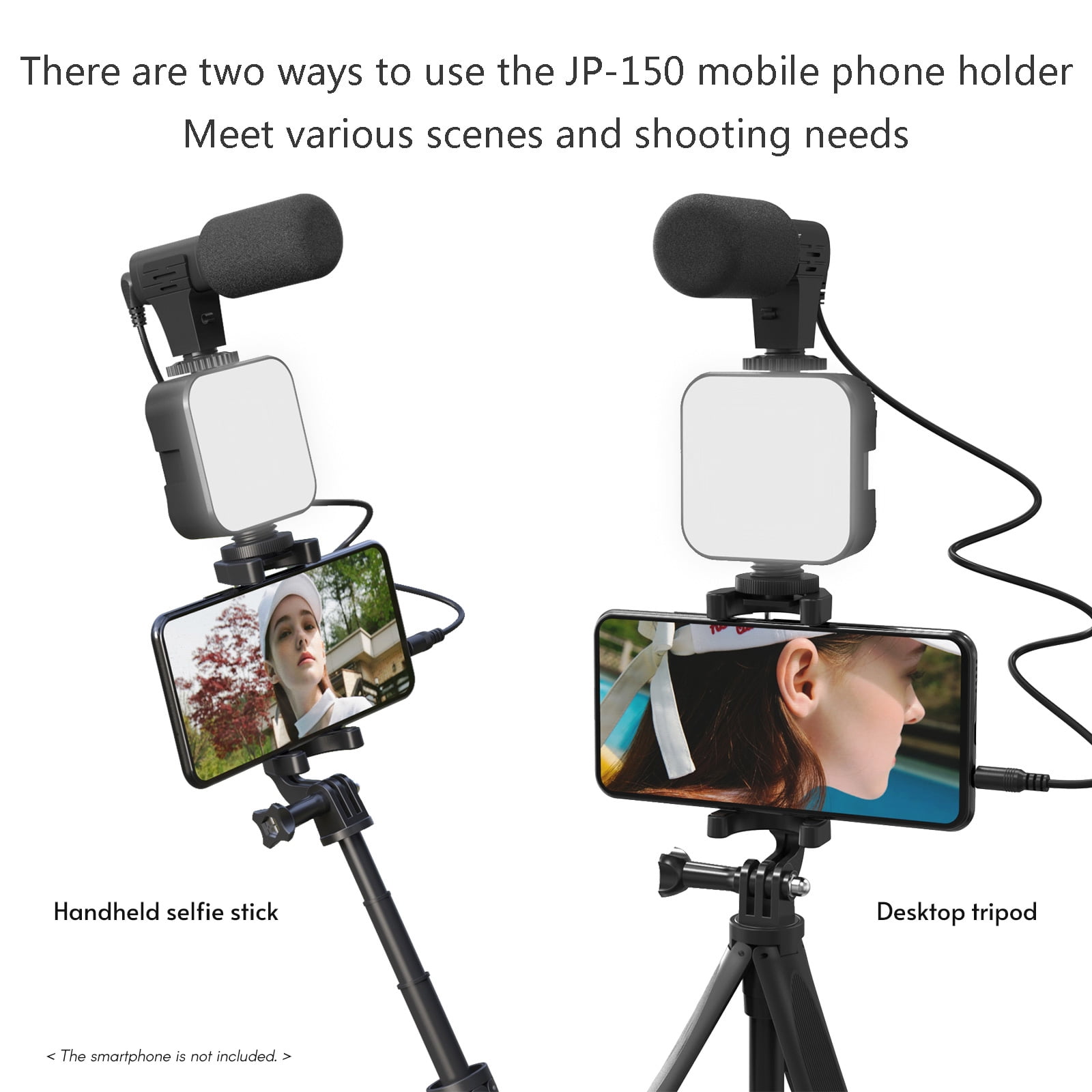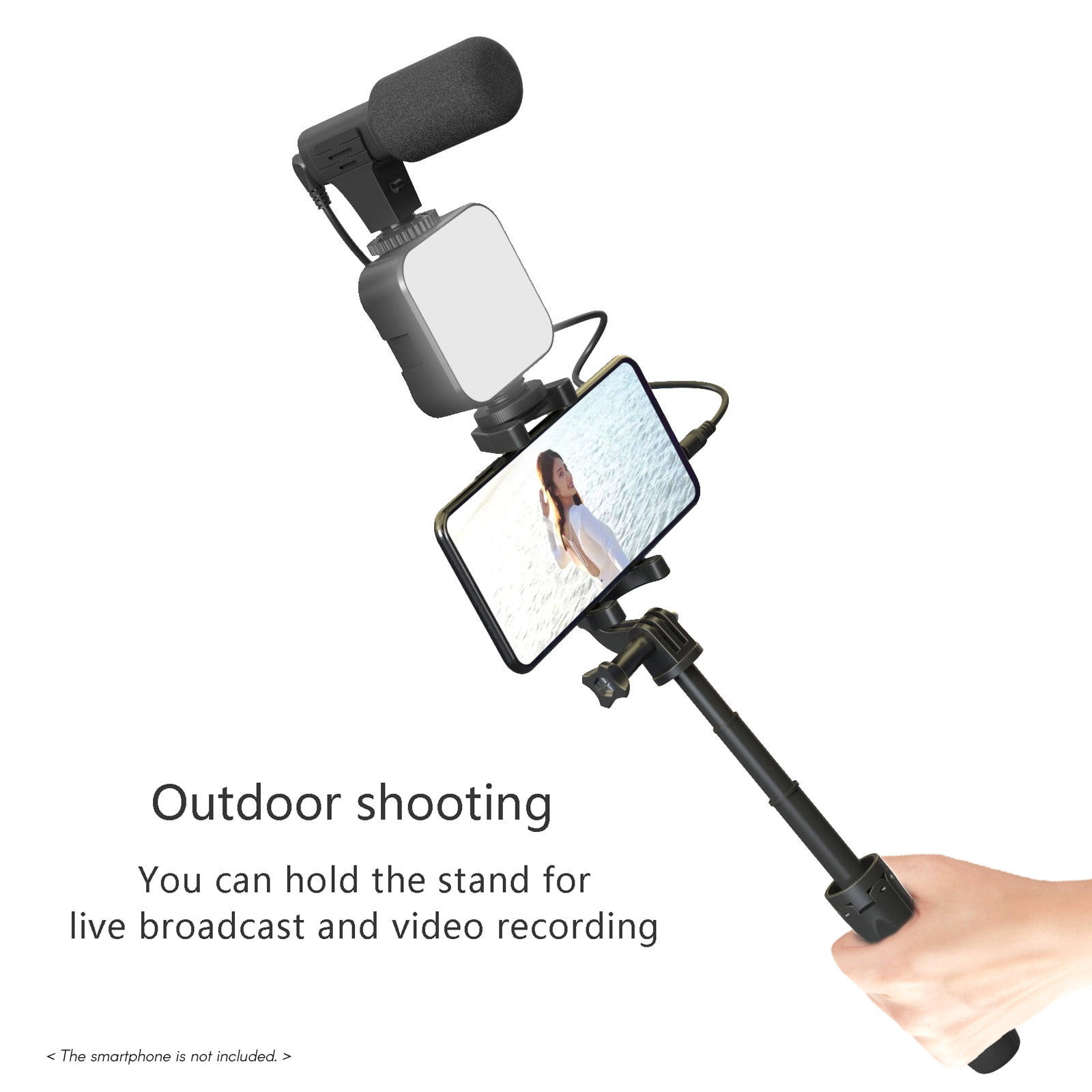 3 sections extendable, height from 21cm to 31.5cm; with rotatable phone clip, suitable for horizontal & vertical photography, meeting your different needs. Dimmable brightness from 0% to 100%, satisfying your various brightness requirements; powered by 2 * AA battery, no need to, quick and convenient for use. With 3 cold shoe mounts on the LED video light, equipped with a clip with cold shoe mount, providing more access for accessory attachments like microphones, more video lights, etc. Can pick up sound from all directions and reproduce it clearly; with wind muff, effectively reducing ambient noise, wind noise, and vocal plosives. Not only a nice smartphone Vlog kit for Vlog recording, but also great for live streaming, video watching, video conferences, and more.