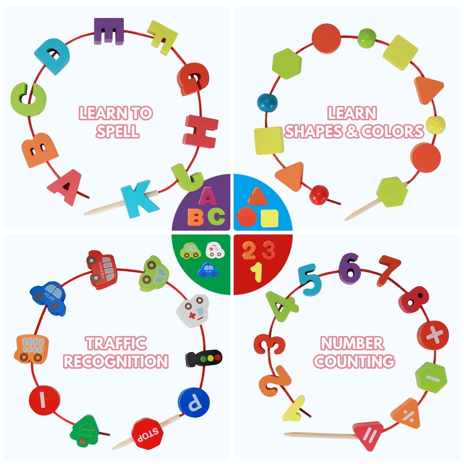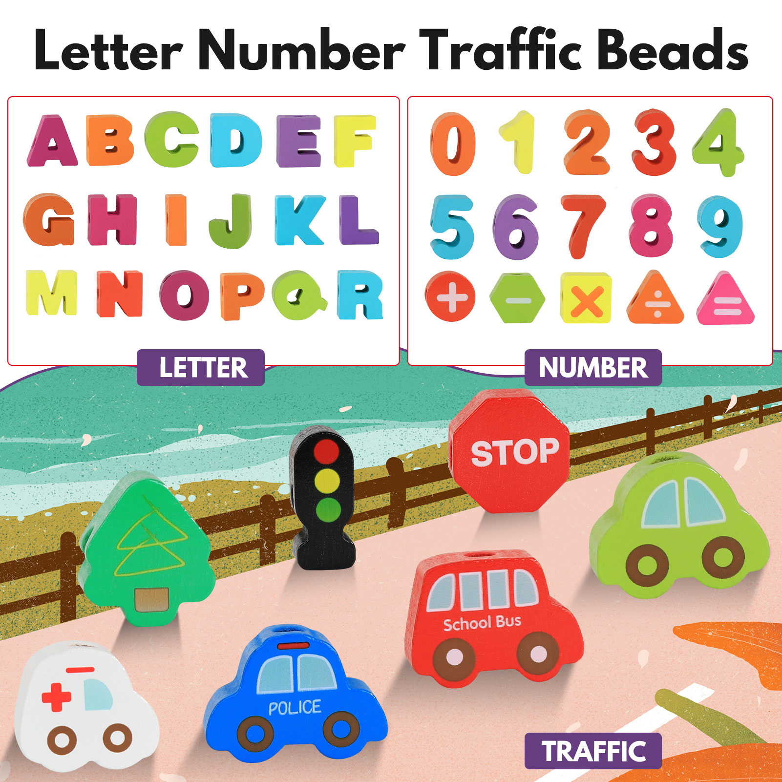 This Threading Letter Number City Transportation Beader Toy can helps entertain your child while learning to improve their skills.
