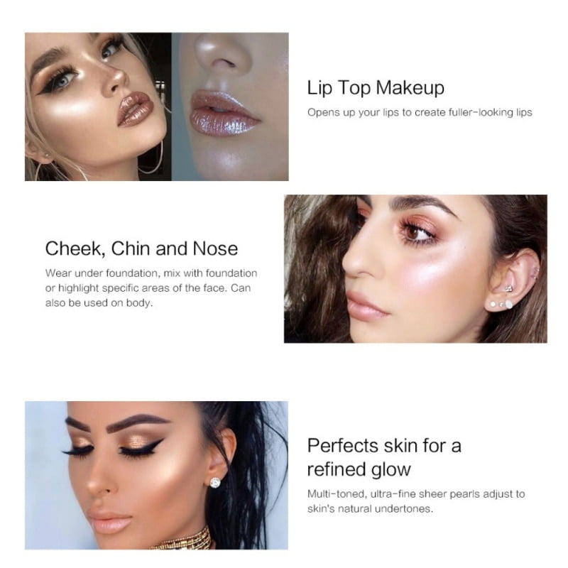 Directly apply to the necessary parts; or use with liquid foundation ,cream foundation and cream blusher to create bright and fashionable makeup.