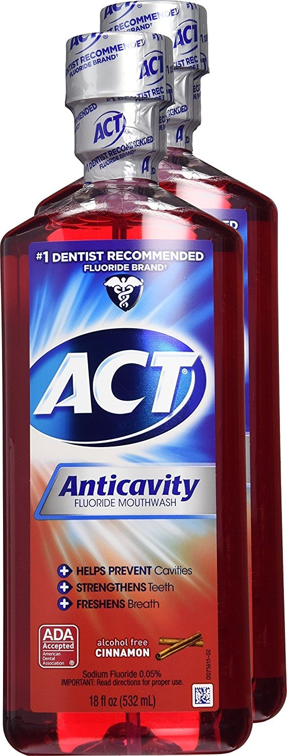 2 Pack – ACT Anticavity Fluoride Rinse Cinnamon 18 oz Each