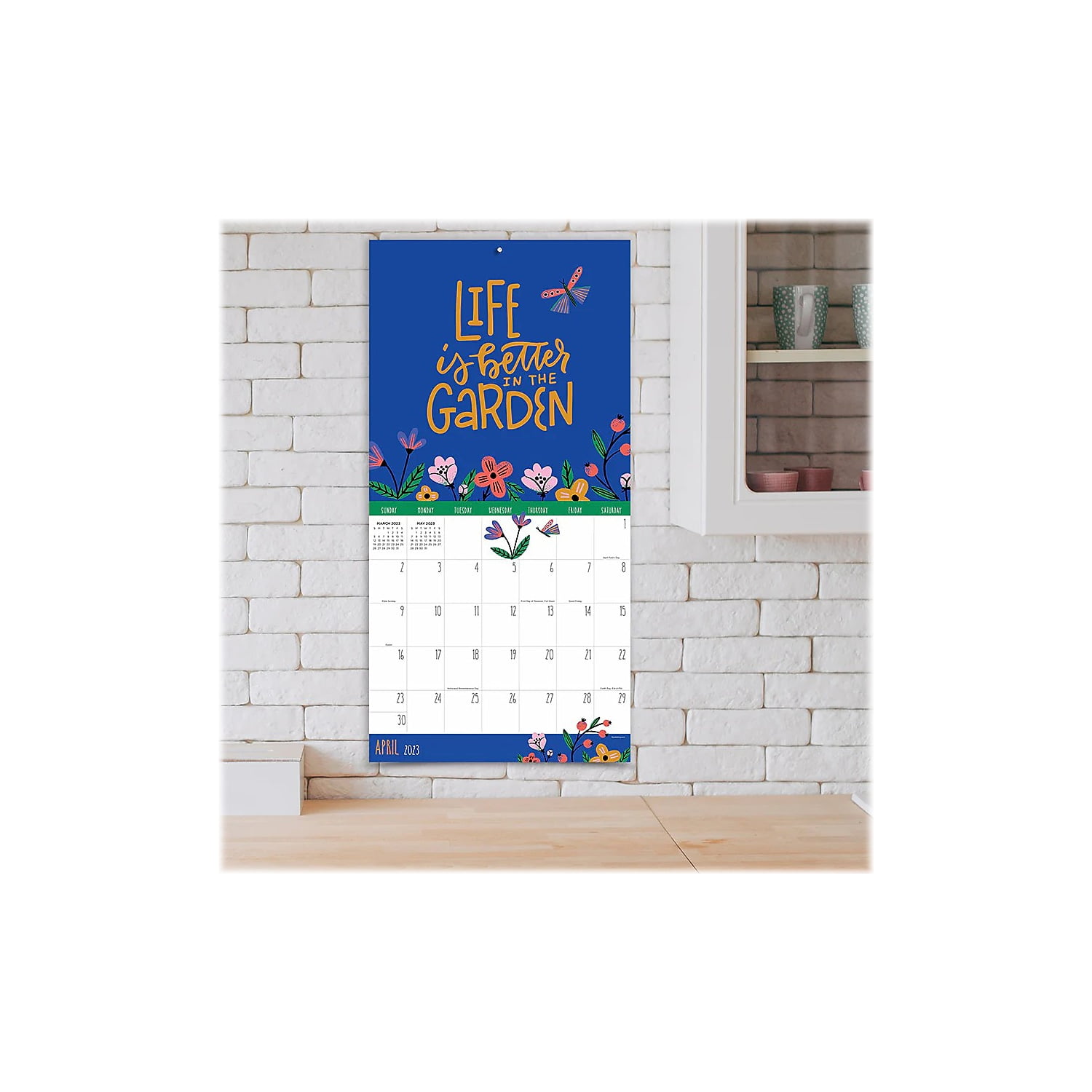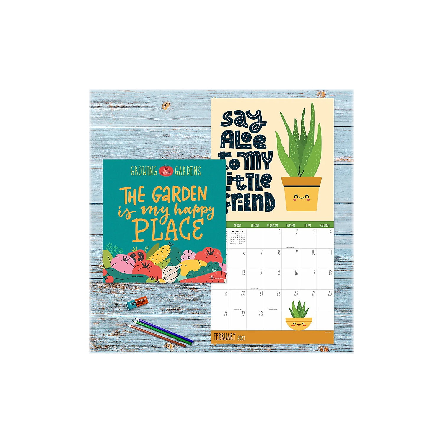 How does your garden grow? The TF Publishing Growing Gardens 2023 wall calendar measures 12"" x 12"" and will have you ready to play in the dirt. The calendar includes 13 colorful and fun sayings to get you motivated to finally plant that garden, combined with monthly calendar grids and a bonus four-month view of January 2024 to April 2024. Printed on premium matte paper that works great with either a pen or pencil. Wall calendar for 2023 is a perfect decoration for your room and a great way to keep you focused on your daily goals. Dimensions: 12"" x 12"". One month per view offers large monthly grids with ample room for jotting notes, birthdays, and reminders. Covers 16 months, featuring two-page spreads for January 2023 to December 2023 and a bonus spread for January 2024 to April 2024. Design: Growing Gardens. Printed on premium matte paper that works great with either a pen or pencil. Includes US and international holidays. Sold as 1 Each.