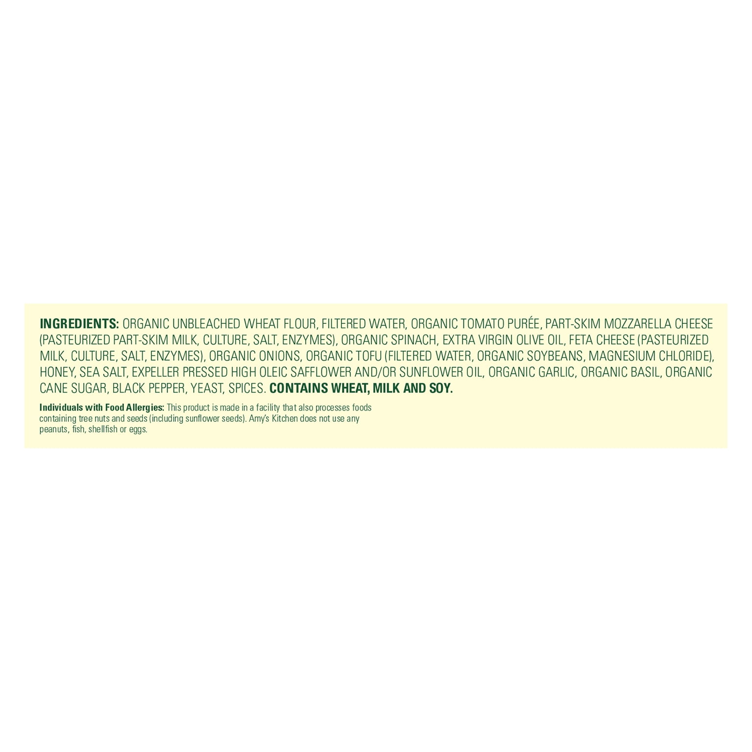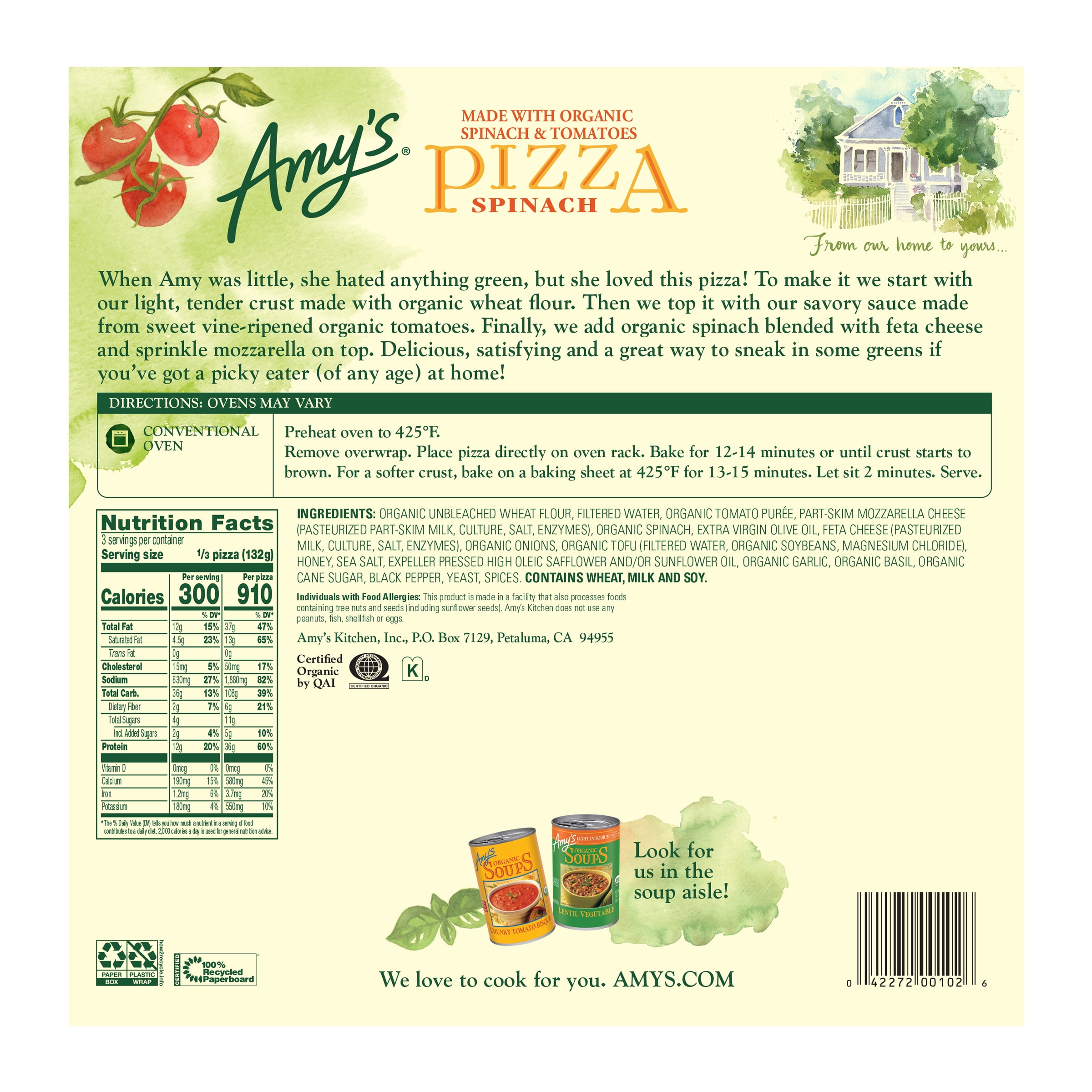 - One 14-ounce Amy’s Spinach Pizza the whole family will love
