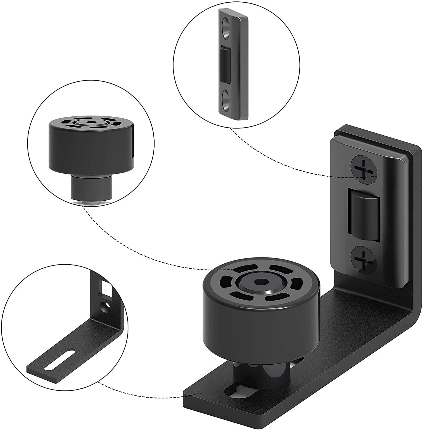- Barn Door Floor Guide: Heavy duty Steel body with matte black surface, nylon small wheel and big wheel, floor guide total weight is 0.33lbs.
