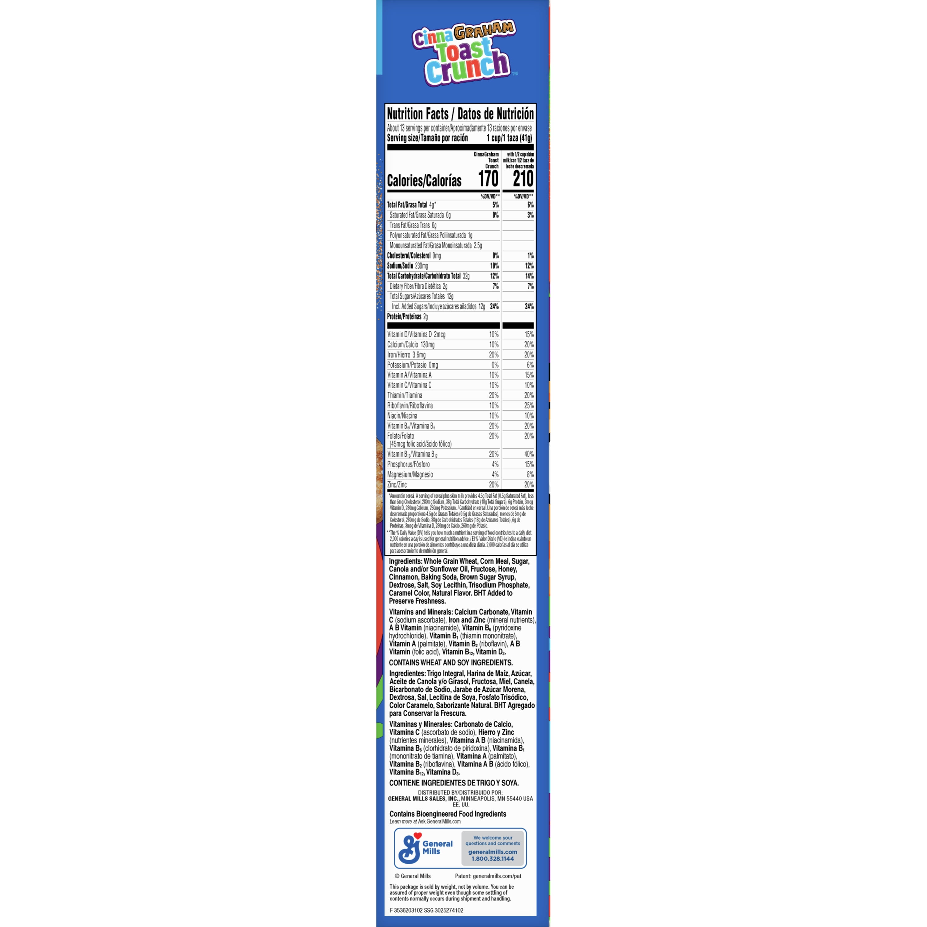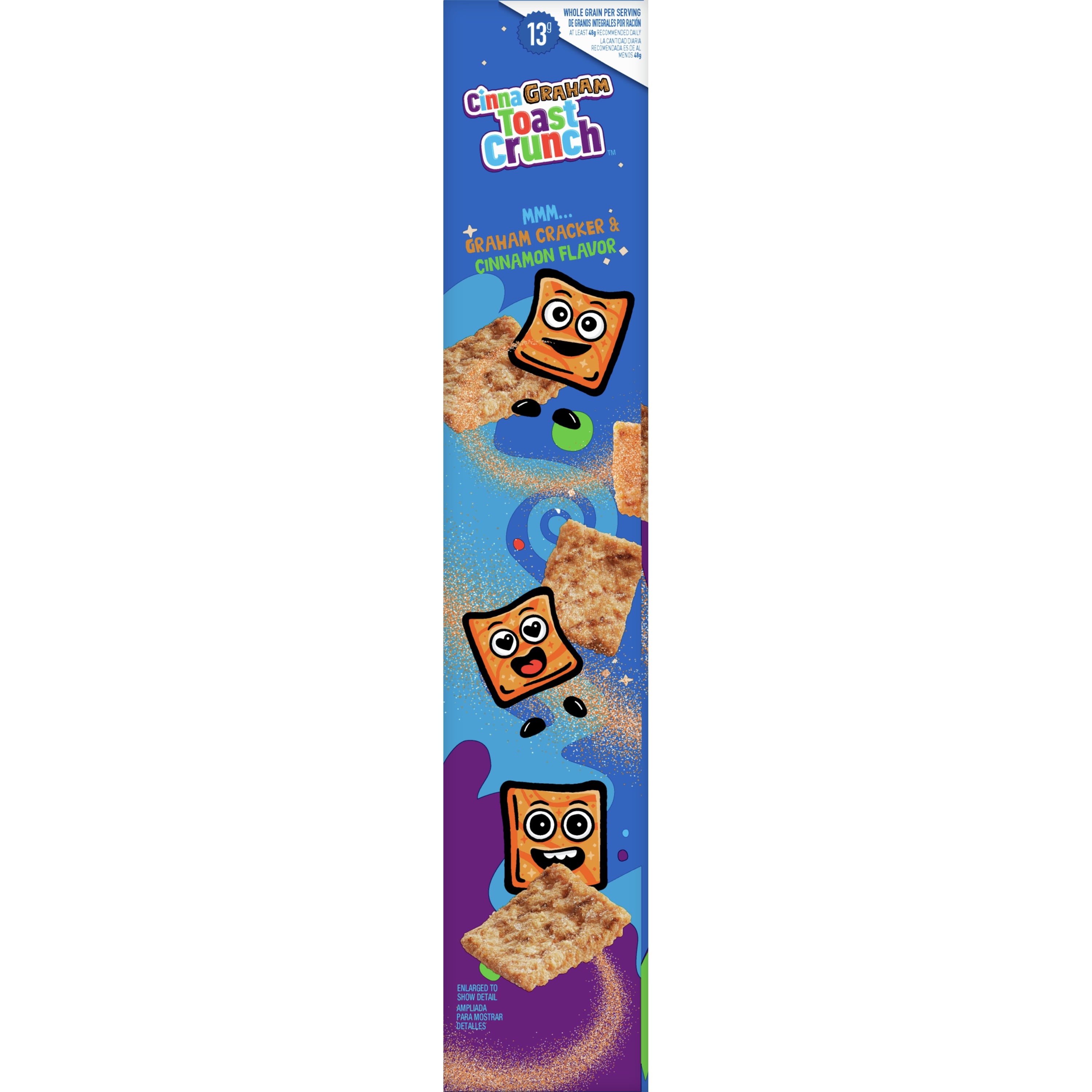 Cinnagraham Toast Crunch is the latest delicious, Cinnadusted breakfast cereal from Cinnamon Toast Crunch. Now you can enjoy the beloved honey sweet flavor of graham crackers with the iconic cinnamon taste of Cinnamon Toast Crunch. Crunchy and irresistibly delicious, it’s perfect for mealtime, snacktime, or whenever.Cinnagraham Toast Crunch breakfast cereal is made with whole grains and 12 vitamins and minerals, making it a healthy breakfast for growing kids and teens.If you’re looking for a quick and easy kids breakfast idea, it doesn’t get more awesome than this. Just pour a bowl, splash on some milk and enjoy. And don’t forget to drink the Cinnamilk, the treasured milk found at the bottom of your cereal bowl.Enjoy by the bowlful, handful or forkful (hey, we don’t judge). Grab a fistful as you’re headed out the door, pack a snack box for when you’re on the go, enjoy it as a bedtime snack, or have a box ready for a midnight snack (or when your host your kids’ next sleepover).
