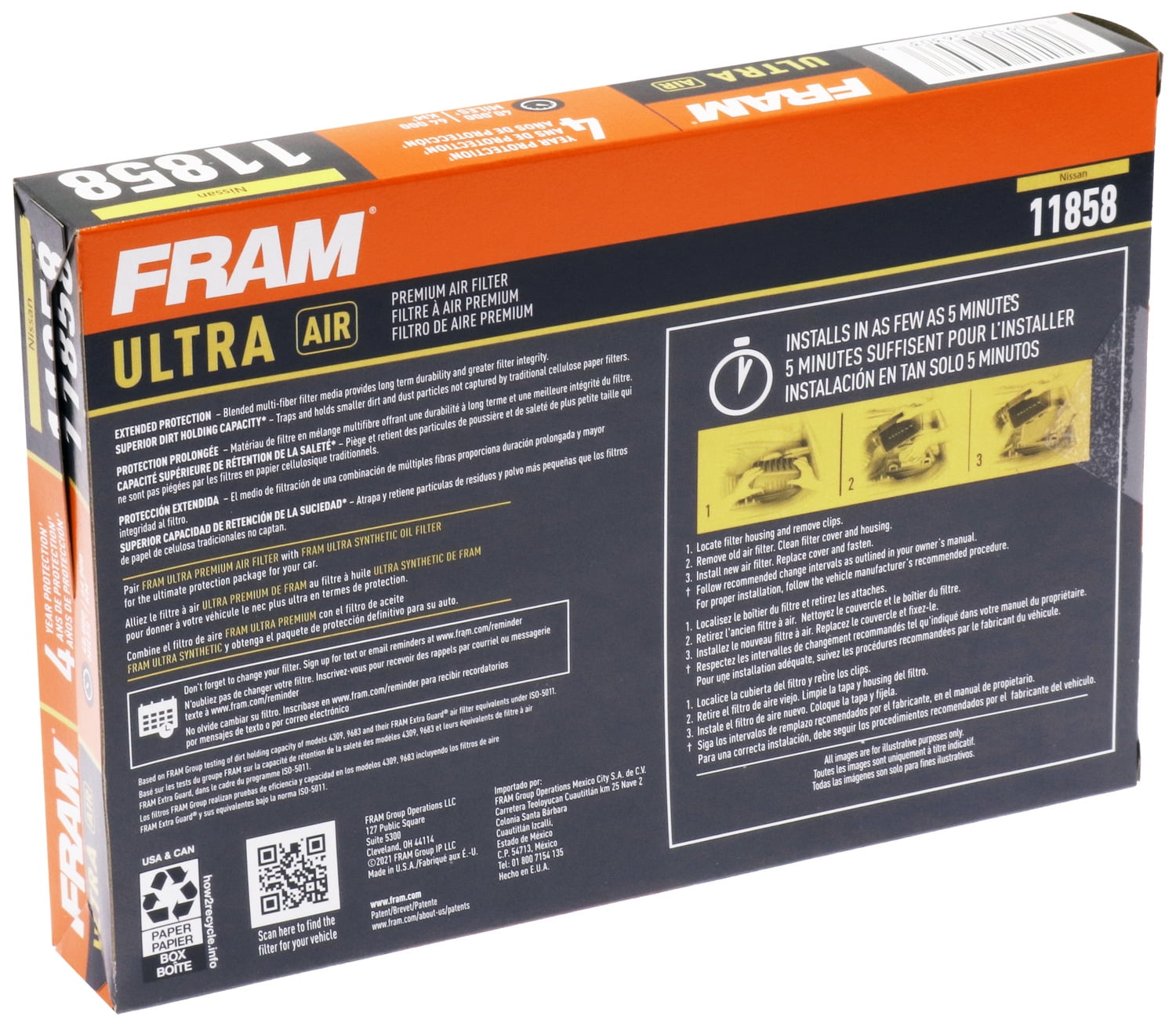- FRAM Ultra Premium Air Filter, 11858 fits the same cars, trucks and SUVs as the FRAM Extra Guard CA11858. Upgrade your air filter today.