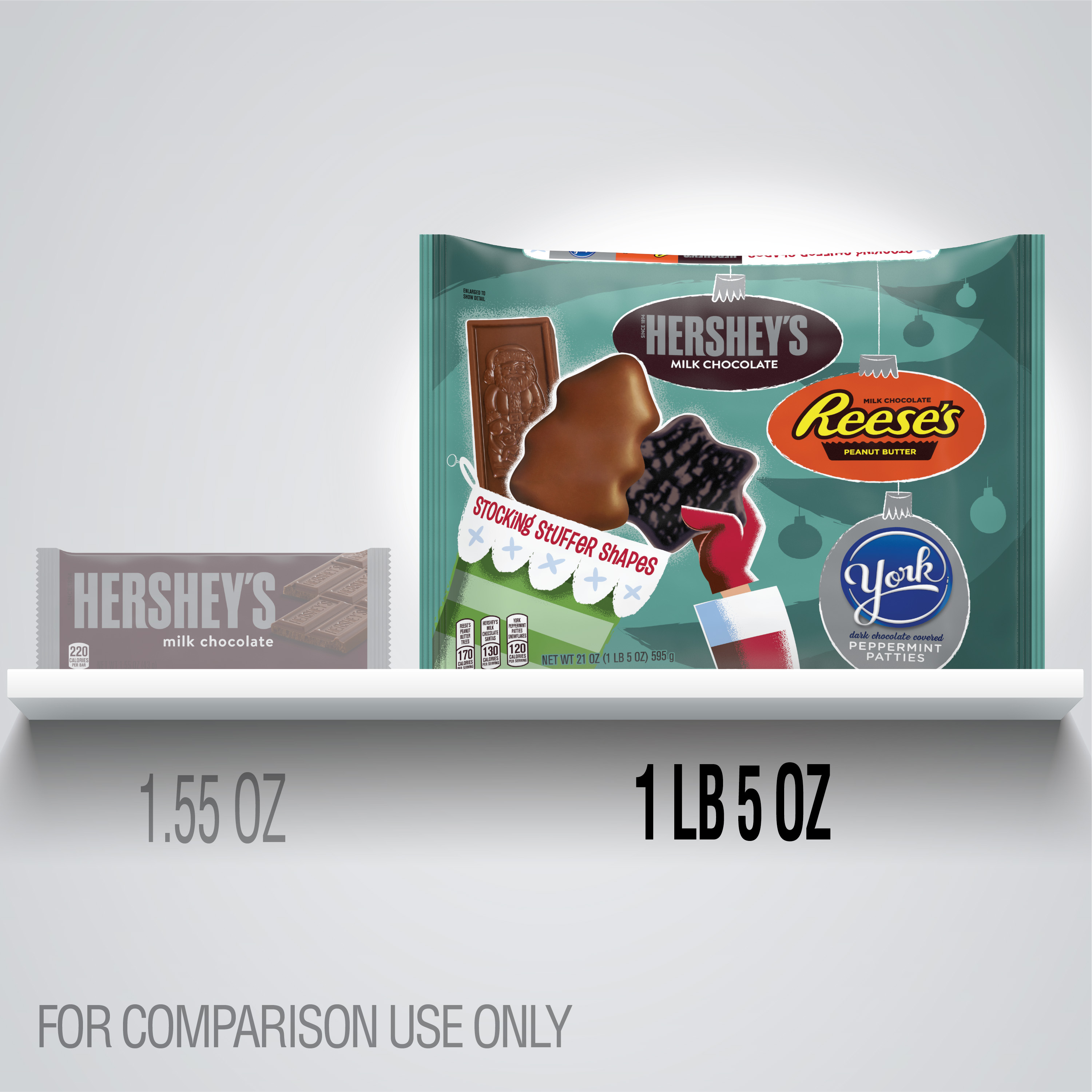 Hershey’s, Holiday Milk Chocolate Candy Stocking Stuffer Shapes Assortment Laydown Bag, 21 oz
