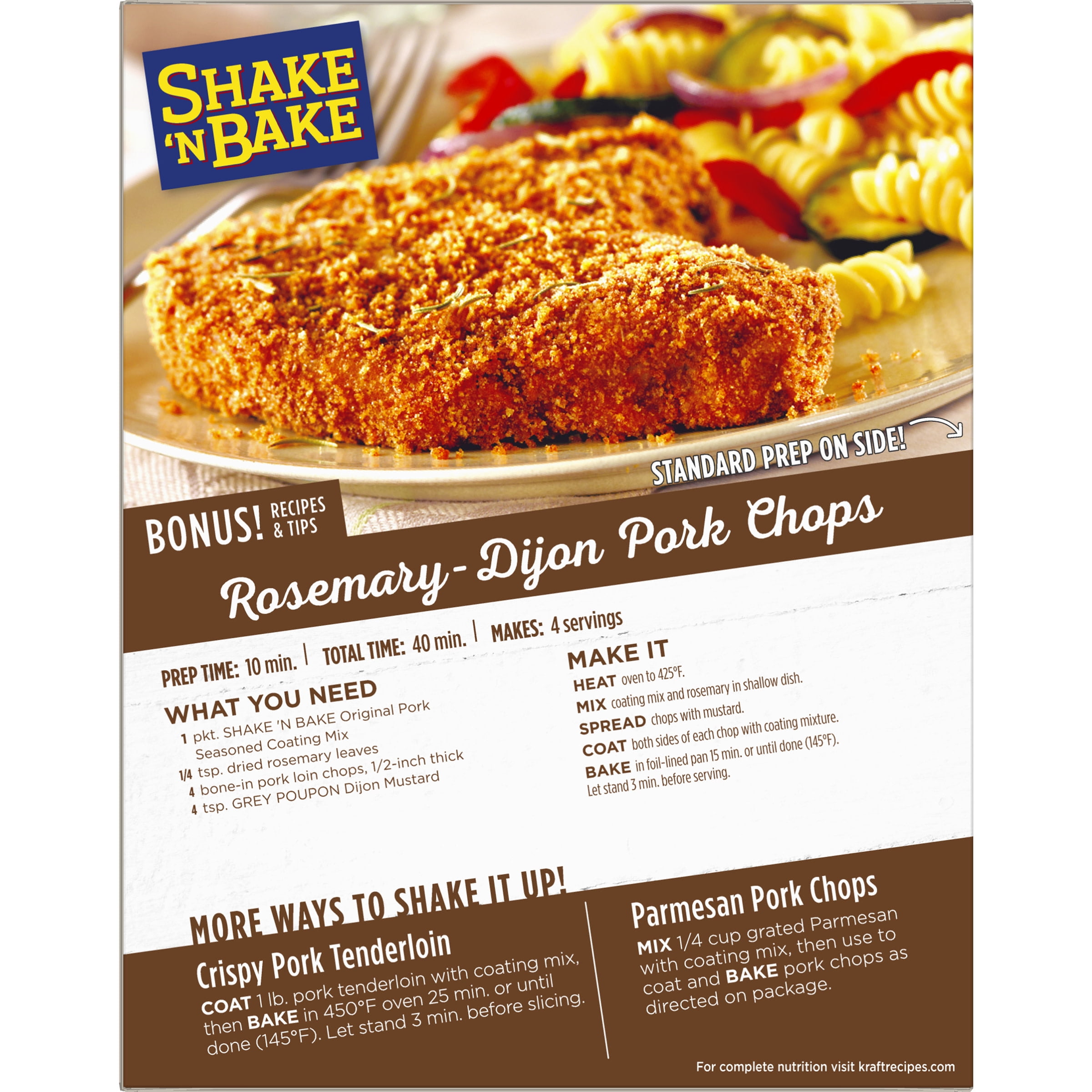 - Try using Shake ‘N Bake Original Pork Seasoned Coating Mix to make Rosemary-Dijon Pork Chops, Crispy Pork Tenderloin or Parmesan Pork Chops