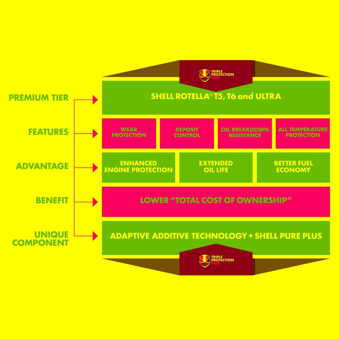 Shell Rotella T5 Heavy Duty 10W-30 Engine Oil has been enhanced with premium synthetic base oils plus advanced additive technology. Protects against wear, deposits and oil breakdown. Plus better low temperature flow and better fuel economy performance. Emissions system compatibility helps control the blocking or poisoning of exhaust after-treatment devices which help maintain vehicle emissions compliance. Shell Rotella T5 Heavy Duty 10W-30 Engine Oil provides capability to improve cold starting, reduce fuel consumption and save money. Shell Rotella T5 Heavy Duty 10W-30 Engine Oil can provide fuel economy savings up to 2% compared to a conventional 15W-40. The advanced formulation delivers good cleanliness and protection against piston deposits ensuring engine and component reliability.