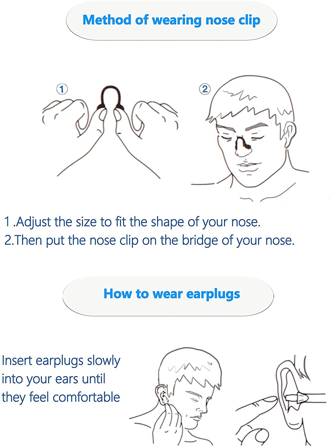 [Very practical]Whatever you are a swimming professional or a swimming beginner, you can wear nose clips and earplugs for water sports, staying in the water for a longer time, it is a very practical tool. In addition to swimming, it can also be used for surfing, diving, sleeping, reading, etc., but it may not be suitable for children under the age of 7 because the nose clip may be too big for their nose.