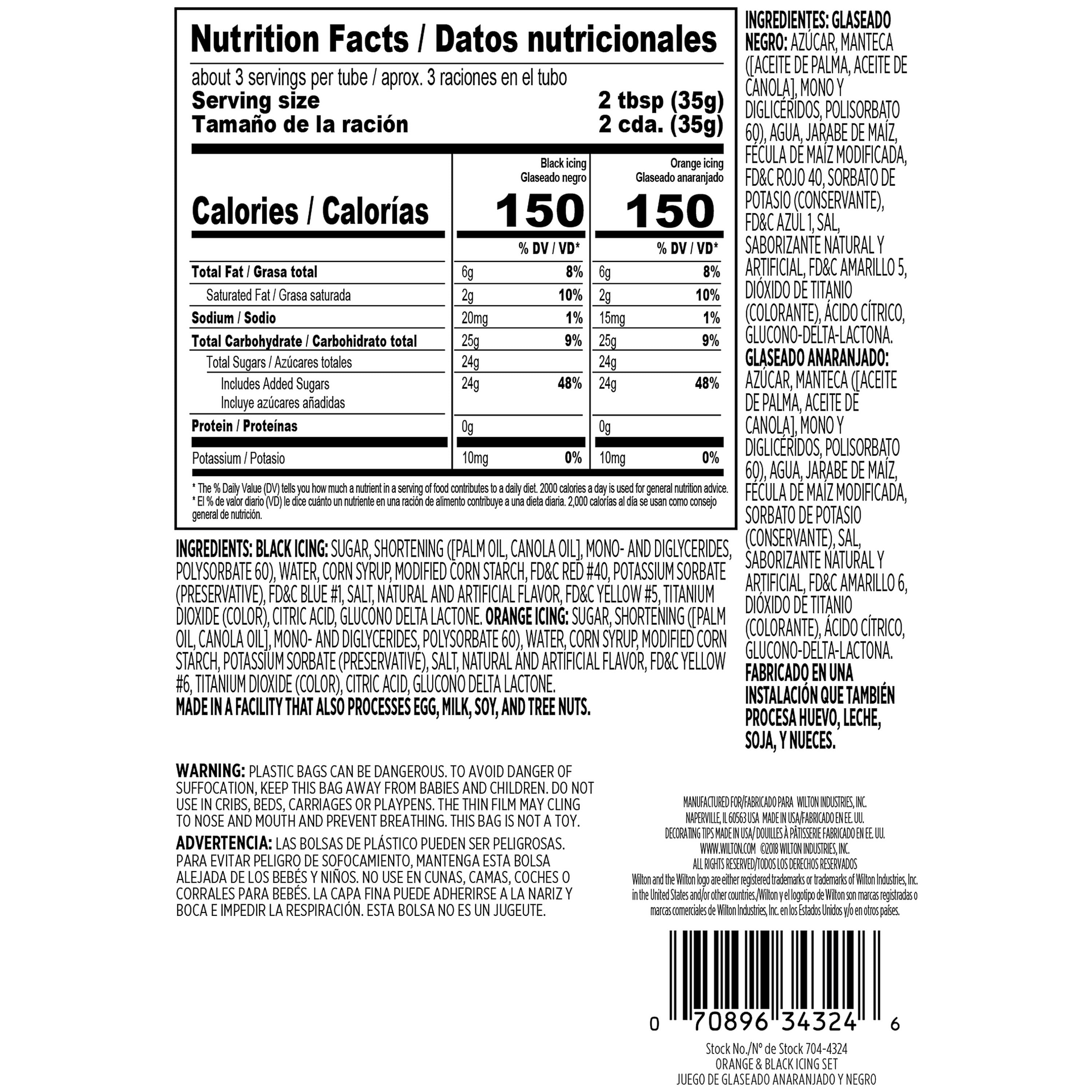 Give a colorful, decorative flair to your favorite treats with this ready-to-use orange and black icing set. Includes round and star plastic tips so you can create fun designs on cupcakes, cookies and cakes.