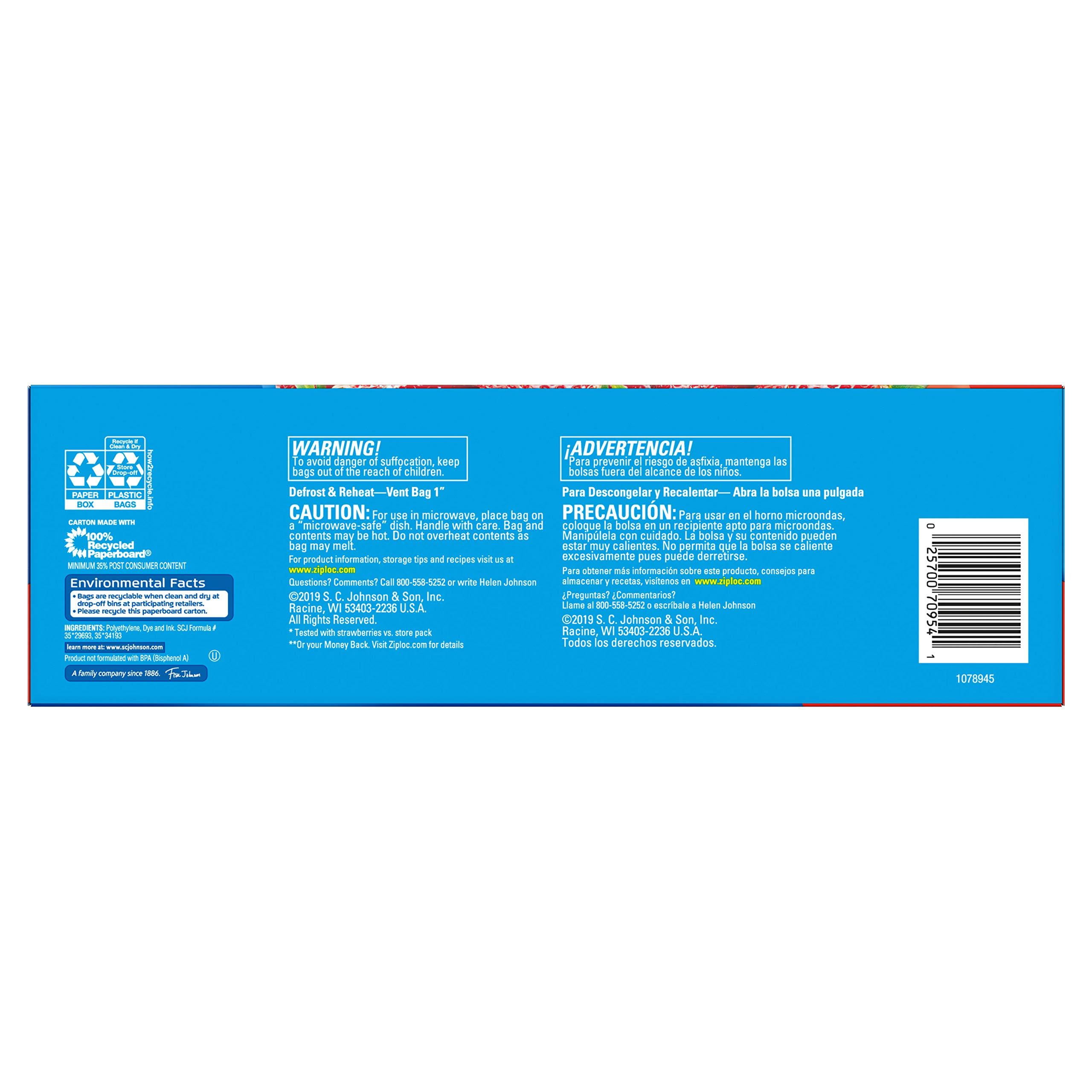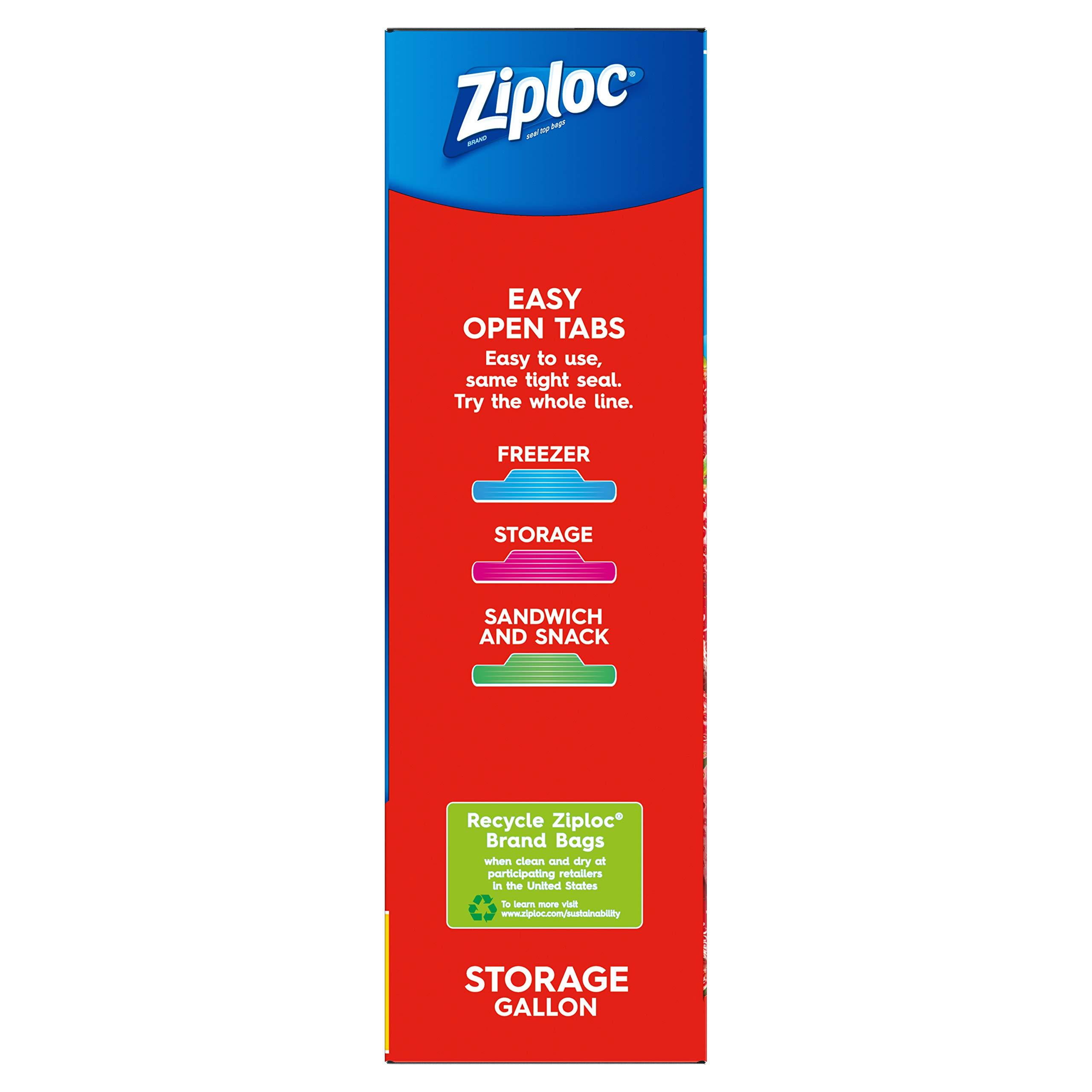 Size, 75 Count Keep food fresh and secure. Now featuring our Easy Open Tabs. Protect your food with Ziploc brand Storage Bags. Each bag blocks out air and locks in freshness, which means less wasted food and money. Plus, our Smart Zip Plus seal lets you feel, hear and see the bag close from edge-to-edge, so you can feel confident your food is protected.