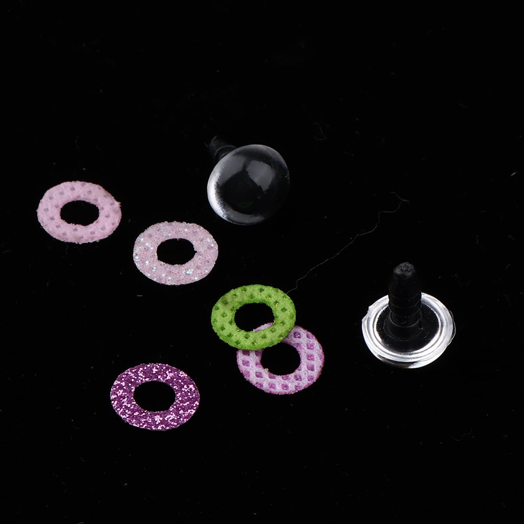 100 Pieces 10mm solid flashing crystal eyes with glitter nonwoven and clear washers.