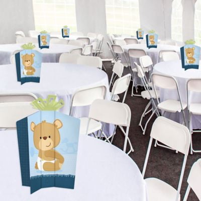 - PARTY CENTERPIECES: Style your baby shower party with Baby Boy Teddy Bear table centerpiece decorations. Place in the center of multiple tables or add to all areas of the party such as welcome entrance, gift table, or dessert buffet for an extra flair.