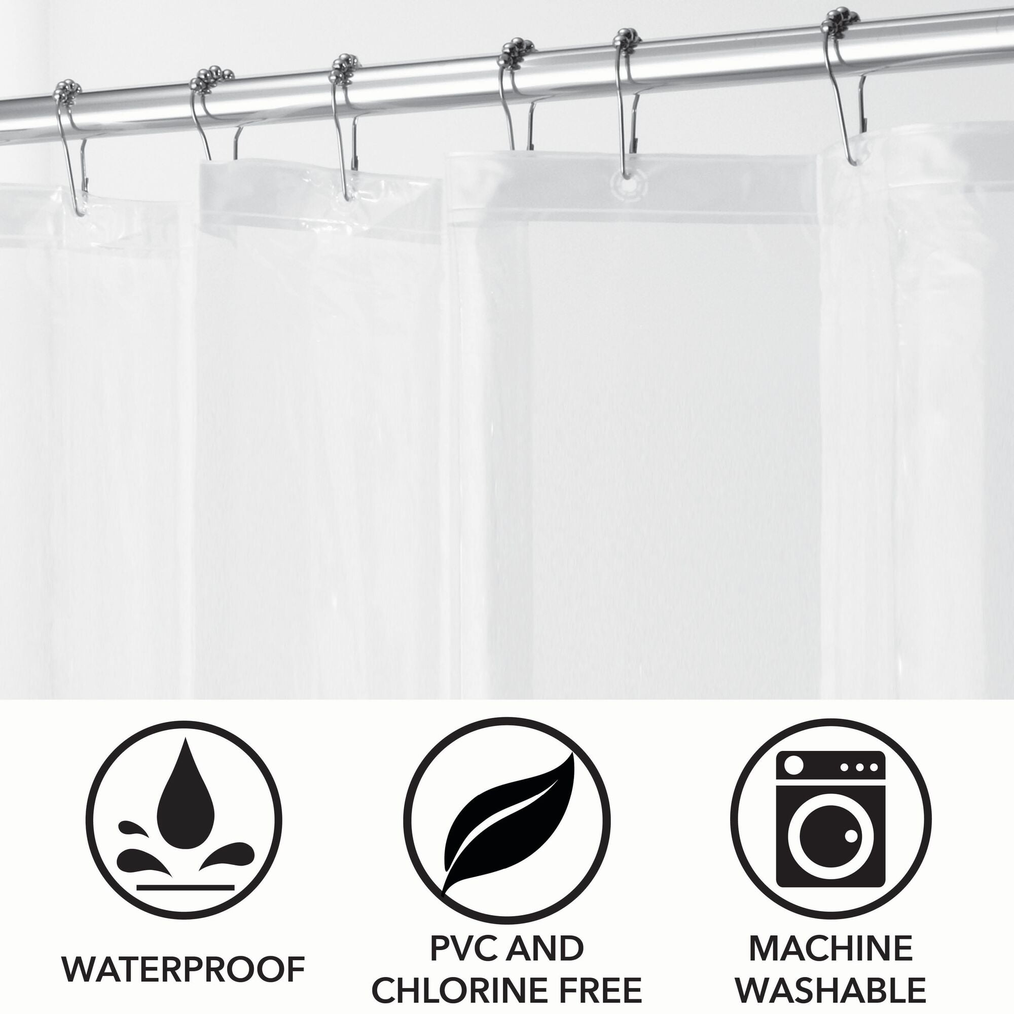 - WATERPROOF: No more slippery wet floors – This curtain is waterproof so that you can keep your bathroom floors free from splashes and sprays of water; Made to withstand damp, moisture-rich bathroom and shower environments; Protect your decorative shower curtains and keep them dry by using this liner; The PEVA coordinates with any decorative shower curtain; Generously sized