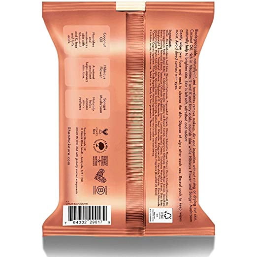 SheaMoisture Coconut & Hibiscus Radiance Facial Wipes are biodegradable, naturally-infused towelettes with coconut oil and hibiscus flower that remove makeup, dirt and impurities as they brighten without rinsing or drying out skin. Skin is left soft, refreshed and radiant.
