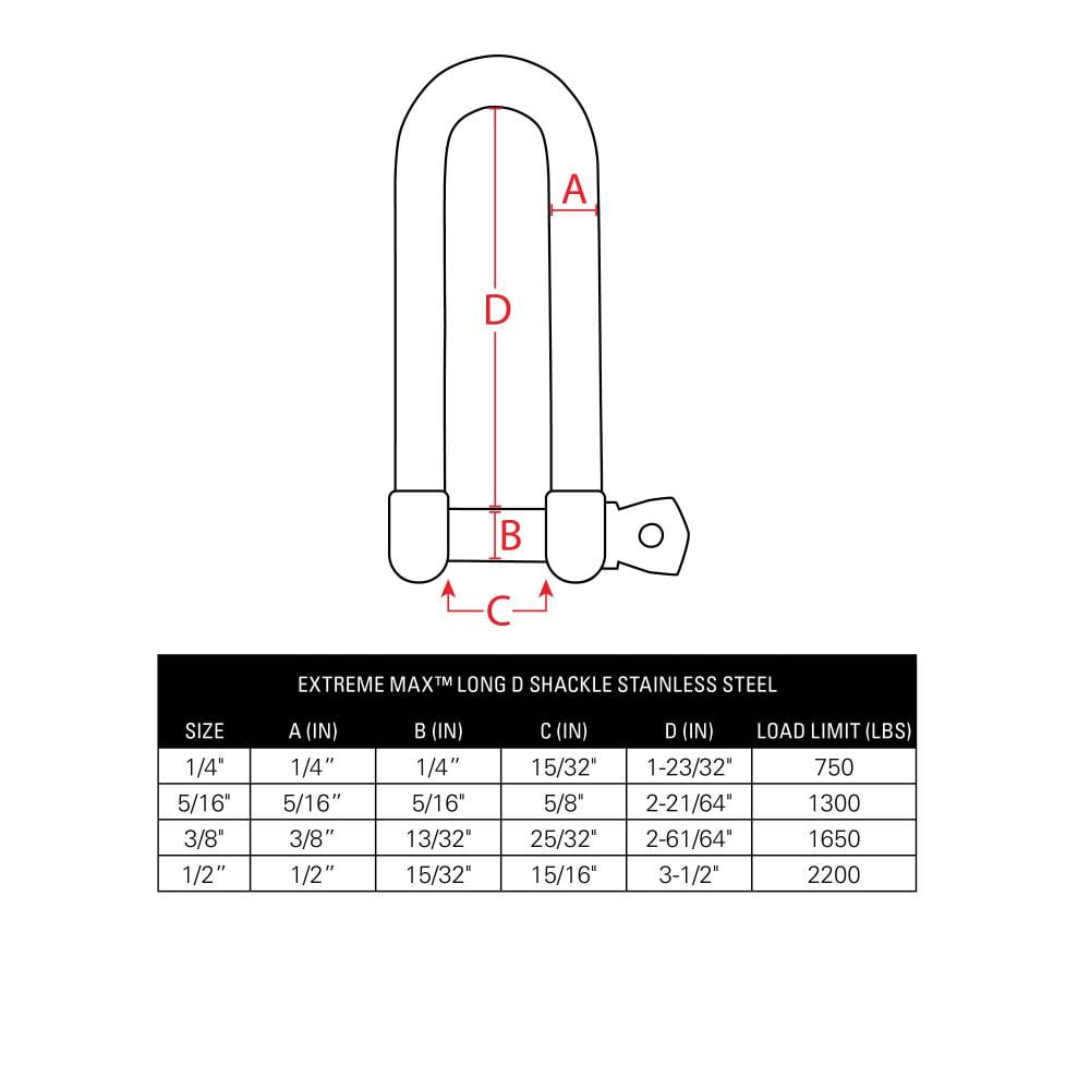 Extreme Max 3006.8201 BoatTector Stainless Steel Long D Shackle – 1/4′