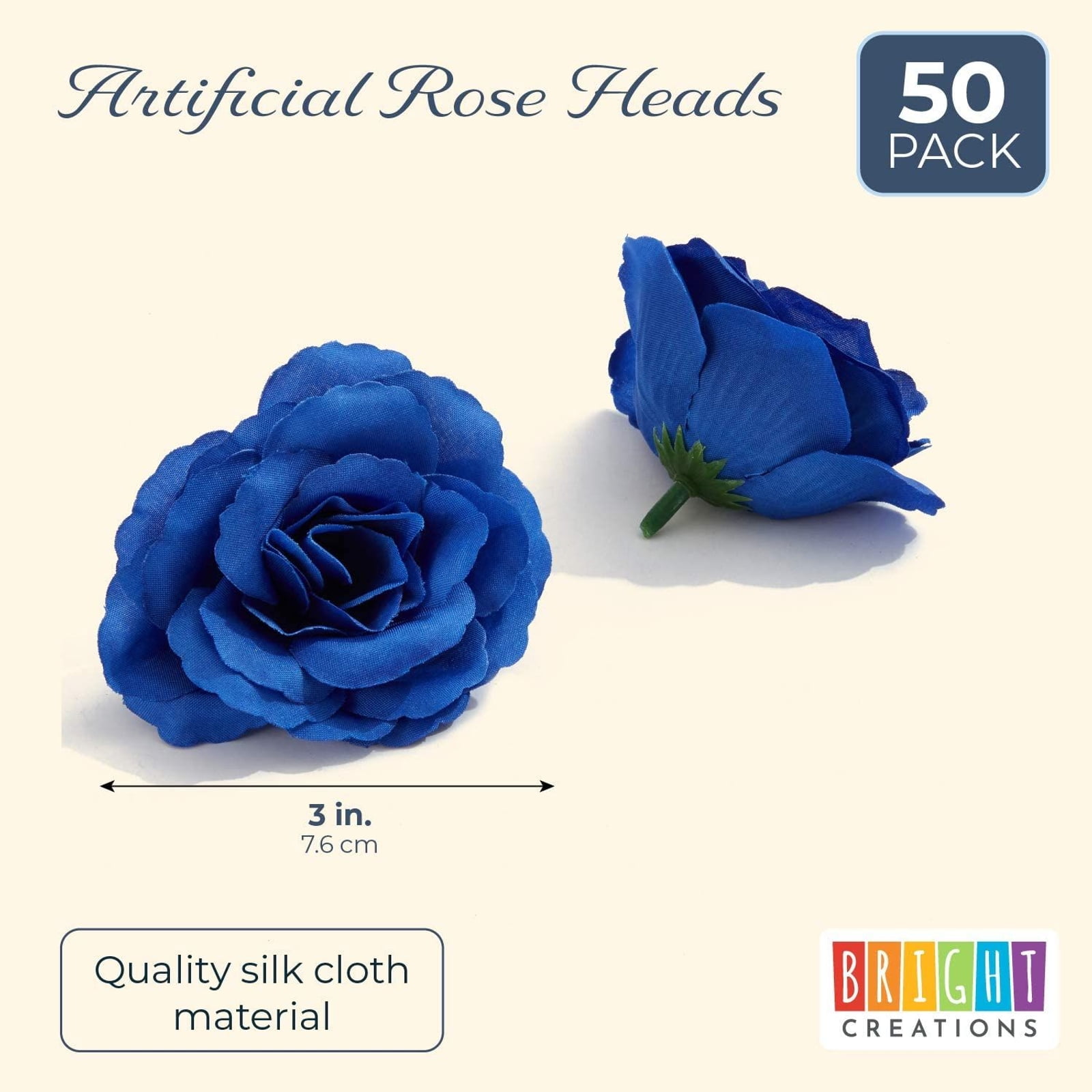 50 Pack 3 inch Dark Blue Silk Rose Artificial Fake Flowers Heads Bulk for Wedding Bouquet, DIY Crafts Decorations