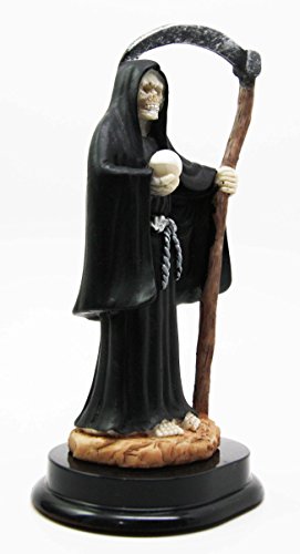 5.5′ Tall Black Santa Muerte With Scythe Protection Decorative Figurine