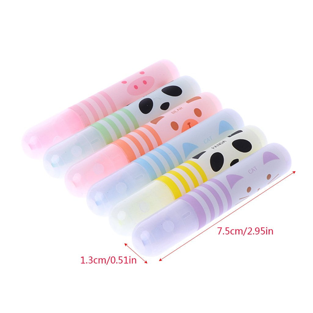 SagaSave Plastic Mini Highlighter Set Marker Pen Fluorescent Pen Farm Cute Pattern 6 Count Colors
