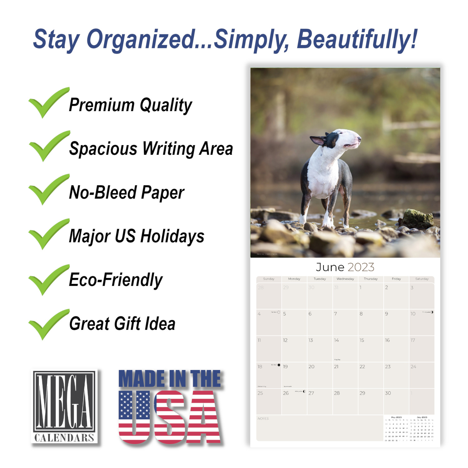 2022 2023 Bull Terrier Calendar – Dog Breed Monthly Wall Calendar – 12 x 24 Open – Thick No-Bleed Paper – Giftable – Academic Teacher’s Planner Calendar Organizing & Planning – Made in USA