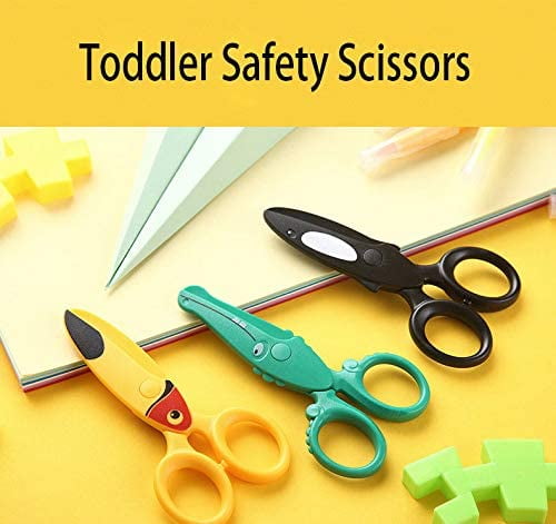 3 Pieces Cute Animal Toddler Safety Scissors, Kids Preschool Training Scissors Child Plastic Art Craft Scissors for Paper-Cut (Dolphin, Crocodile and Toucan Bird)