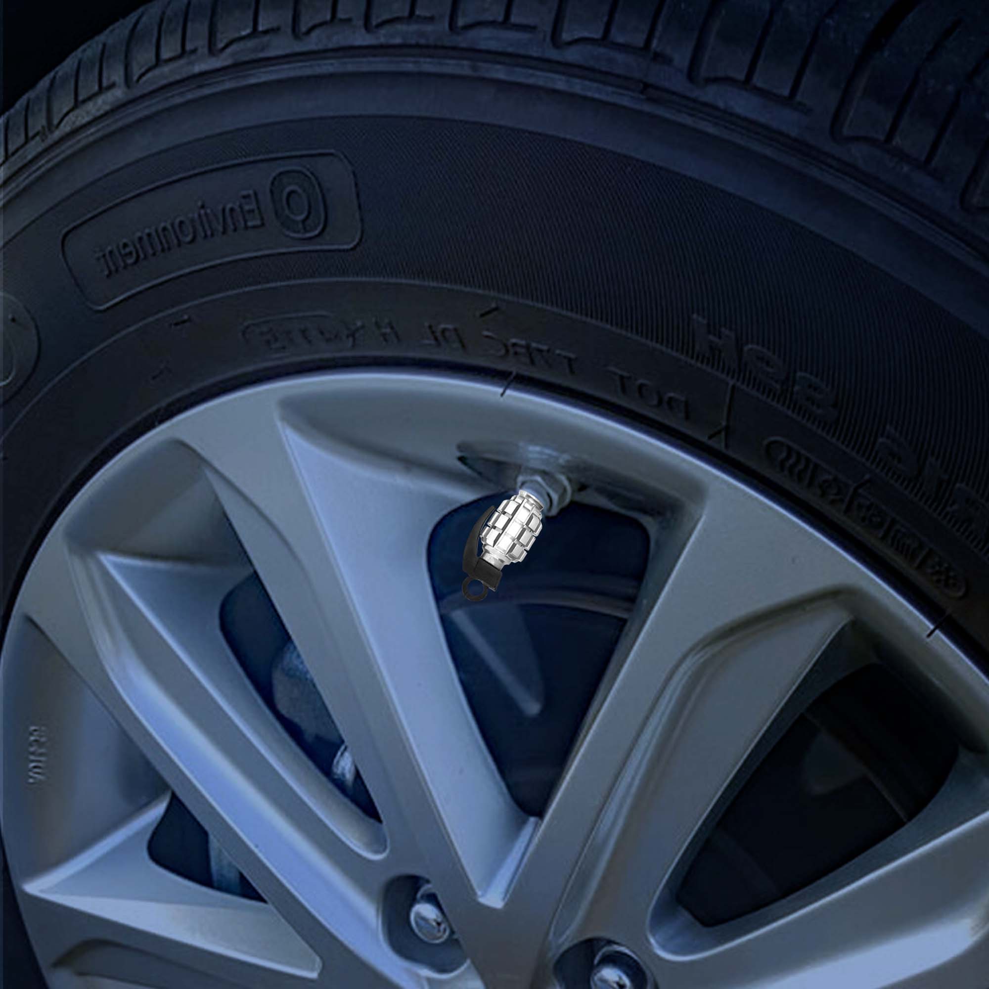 Tire Air Valve Caps, Valve Stem Covers For Cars, Bicycles and Motorcycles, Grenade Bomb Style, Silver Chrome Color – Pack of 4