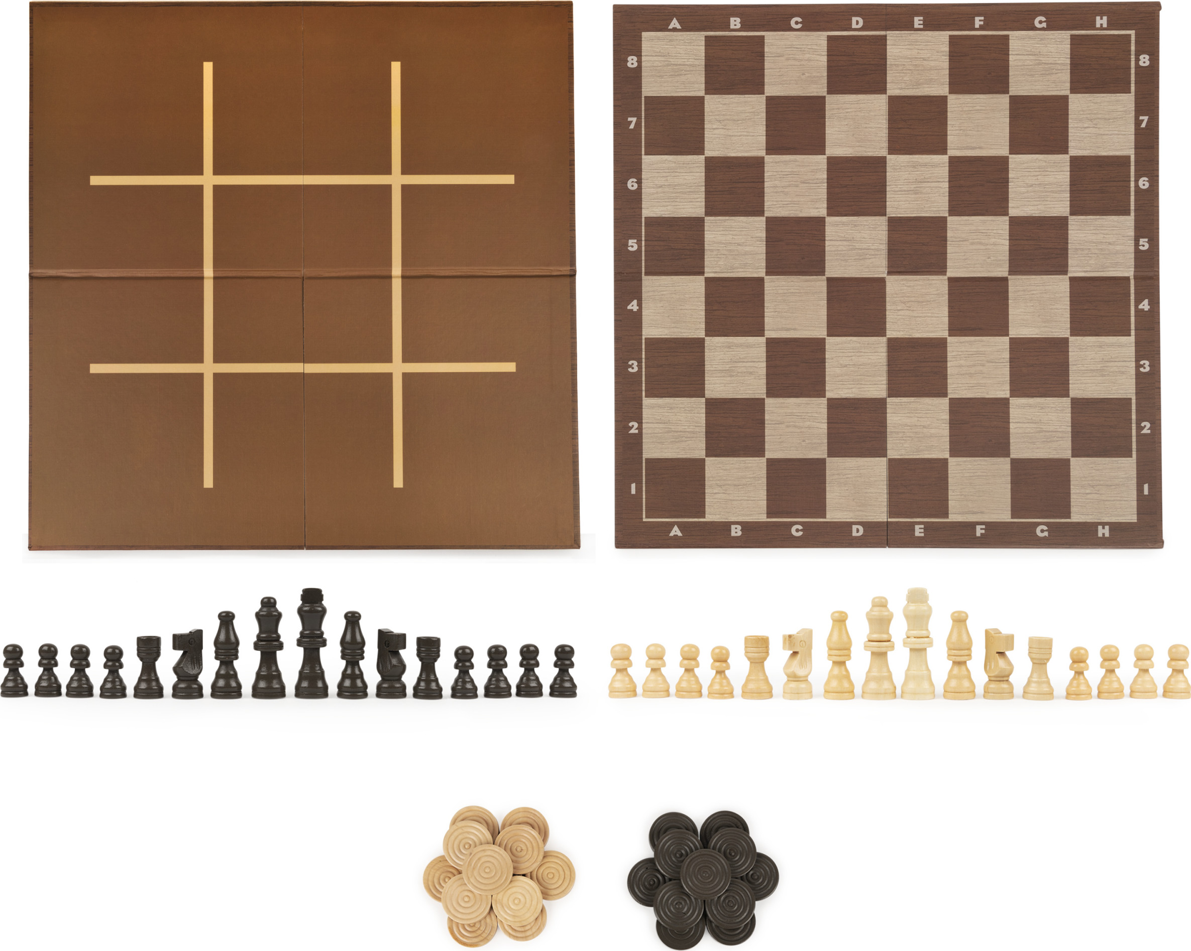 Chess Checkers and Tic-Tac-Toe Set, Classic Strategy Games, for Adults and Kids Ages 6 and up