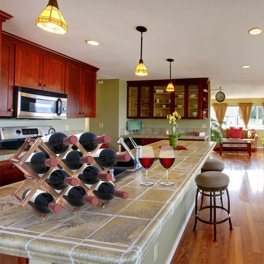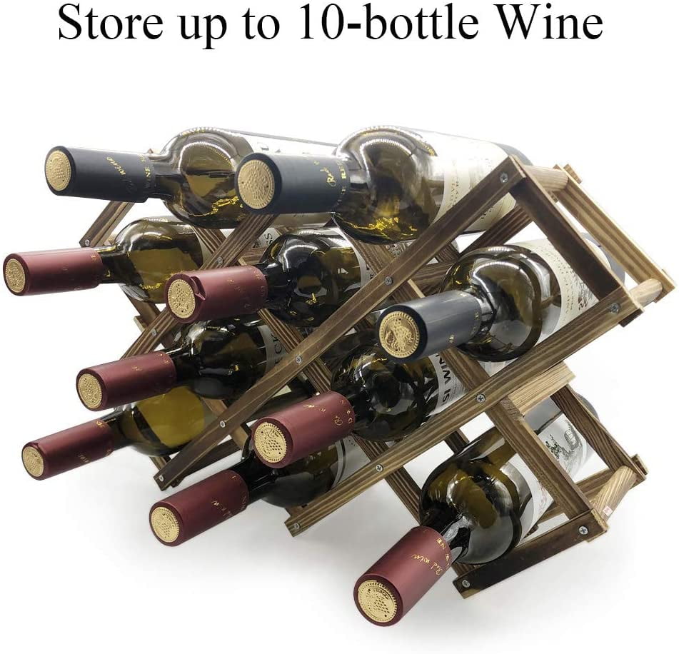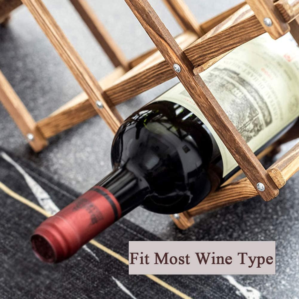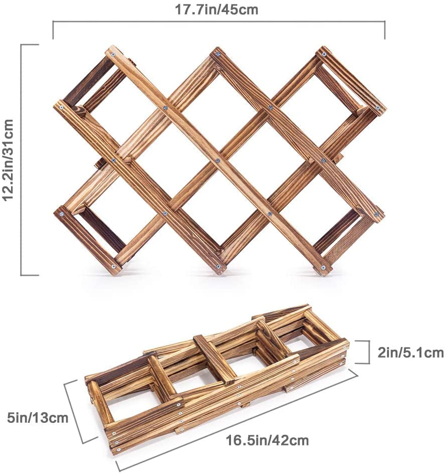 - 【STORES UP TO 10 BOTTLEST】 Easy and compact wine rack you will ever have .Small size but big capacity, This wine storage rack allows you to store up to 10 bottles at a time, the stretched size is17.7x 12.2x 5.1 inches.