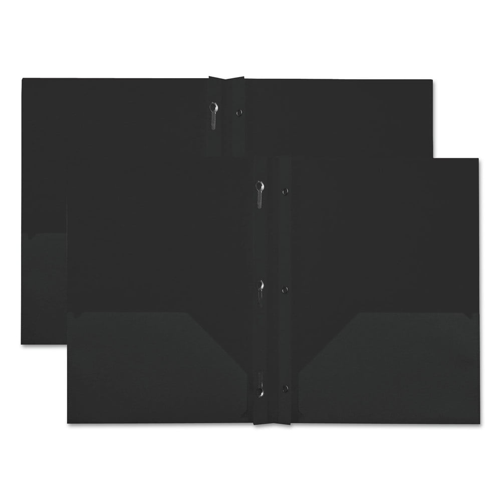 10/Pack 100-Sheets, Plastic Twin-Pocket Report Covers with 3 Fasteners – Black – 20550