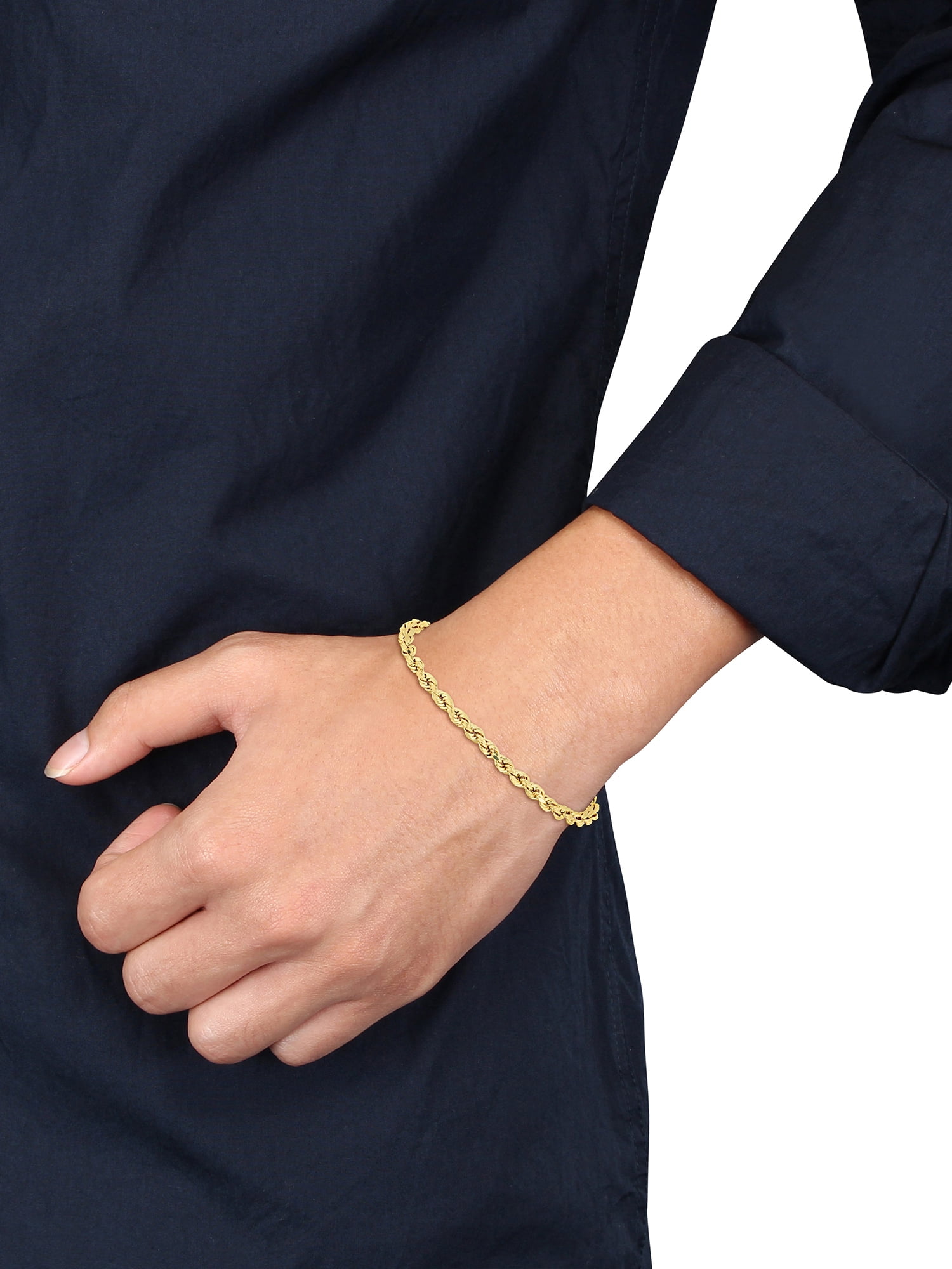 Subtle and sophisticated, surprise him with this handsome Miabella Rope Chain Necklace and Bracelet Set he can wear anytime, anywhere. Crafted in warm yellow gold, both the rope chain necklace and bracelet are appropriate any day. This 24-inch necklace is 5mm wide and the matching gold 9-inch bracelet both secure with a lobster clasp. This two-piece men’s gold jewelry set is a great gift idea for a man you love and appreciate.