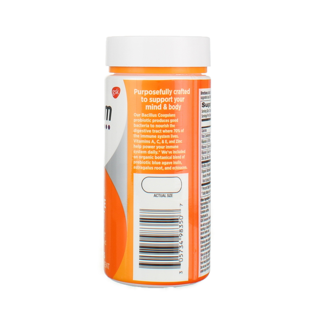 Centrum Immune & Digestive Support probiotic supplement helps power your immune system. These immune supplements contain bacillus coagulans, a probiotic that produces good bacteria to nourish the digestive tract— where 70 percent of your immune system lives. This bacillus probiotic also contains vitamins A, C and E and zinc to power your immune system daily.(1) This immune support supplement comes in a convenient capsule form that is portable and easy to take. Proudly manufactured in a GMP facility, these non-GMO daily probiotic digestive supplements are made with no synthetic colors, dairy, soy, or nuts. Backed by over 40 years of nutritional science expertise, Centrum Immune & Digestive Support supplements are part of a new line of Centrum vitamins purposefully crafted to support your mind and body.(1) (1) These statements have not been evaluated by the Food and Drug Administration. This product is not intended to diagnose, treat, cure, or prevent any disease. One bottle of 50 capsules of Centrum Immune & Digestive Support, Probiotic Supplement with Vitamin C, Zinc, Organic Botanical Blend, Bacillus Coagulans for Immune Support(1) Contains bacillus coagulans, a probiotic that produces good bacteria to nourish the digestive tract— because immune support begins in your gut(1) Vitamin E, A and C and zinc supplement helps power your immune system daily(1) Organic botanical botanical blend of the prebiotic inulin, astragalus root and echinacea Non-GMO immune support supplements made with no synthetic colors, dairy, soy, or nuts Adults: Take two (2) capsules daily with food. Do not exceed suggested use. Not formulated for use in children. Isomalt (sugar alcohol), Calcium Carbonate, Magnesium Stearate, Ascorbic Acid (Vit. C). ContainsCentrum Immune & Digestive Support Probiotics And Vitamin C, 50 Ct (2 pack)