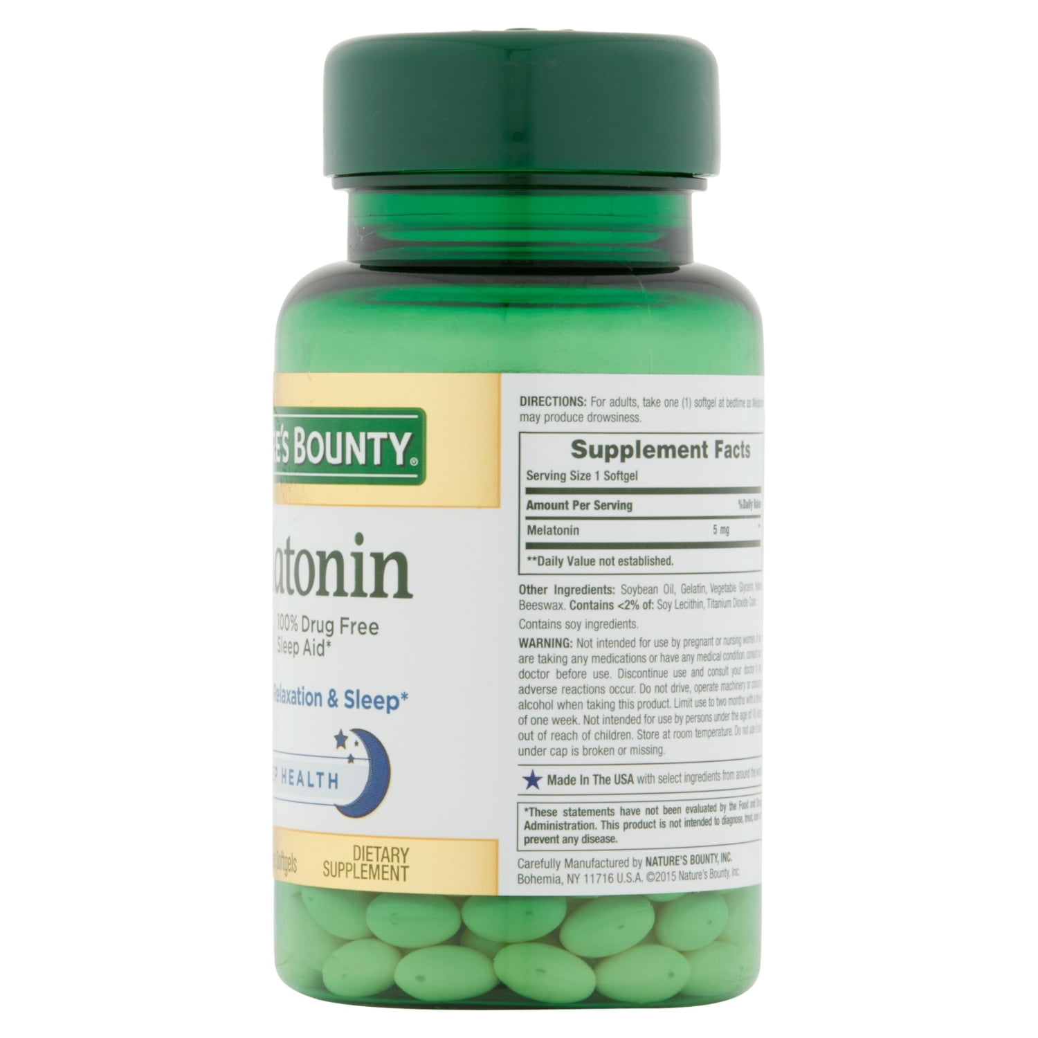Nature’s Bounty Melatonin, a hormone naturally produced in the body that is closely involved in the natural sleep cycle. It’s a terrific choice if you experience occasional sleeplessness or jet lag, or if you want to improve your quality of rest. Sometimes it’s hard to unwind after a long day, so Melatonin helps you fall asleep faster and stay asleep longer.Nature’s Bounty Melatonin, a hormone naturally produced in the body that is closely involved in the natural sleep cycle. It’s a terrific choice if you experience occasional sleeplessness or jet lag, or if you want to improve your quality of rest. Sometimes it’s hard to unwind after a long day, so Melatonin helps you fall asleep faster and stay asleep longer.