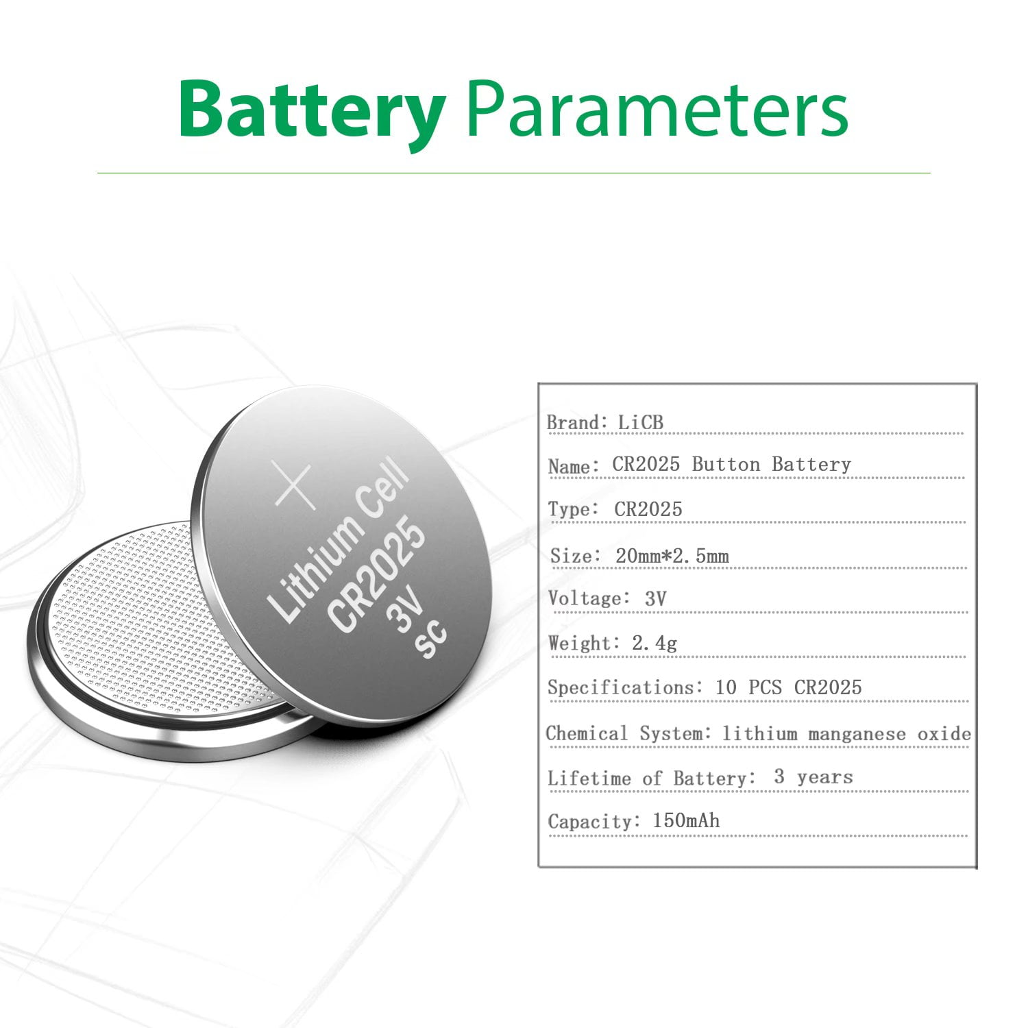 LiCB CR2025 Lithium Batteries 3 Volt Coin & Button Cell (10 Pack)
