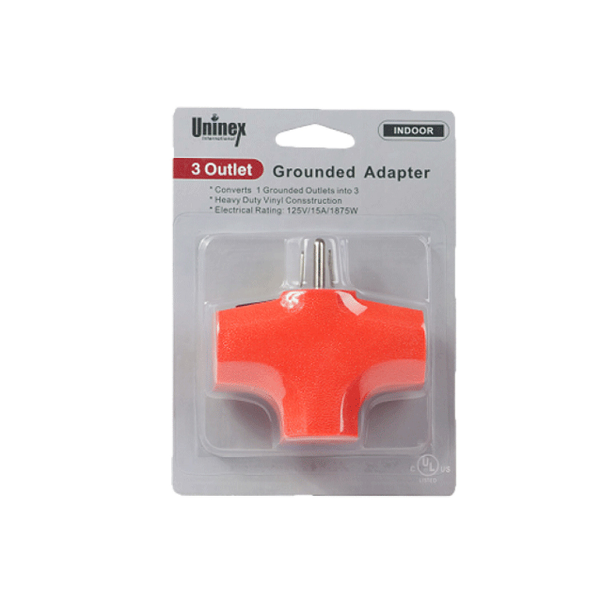Heavy duty vinyl construction adapter converts 1 grounded outlets into 3. UL listed – Use with confidence.