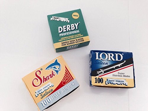 300 Variety Razor Blades — 100 Pack of Lord, Shark and Derby –Barber Shavet