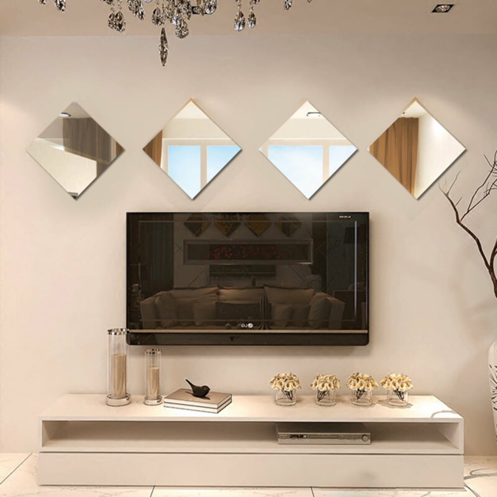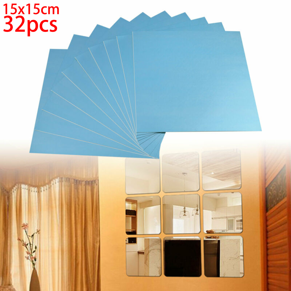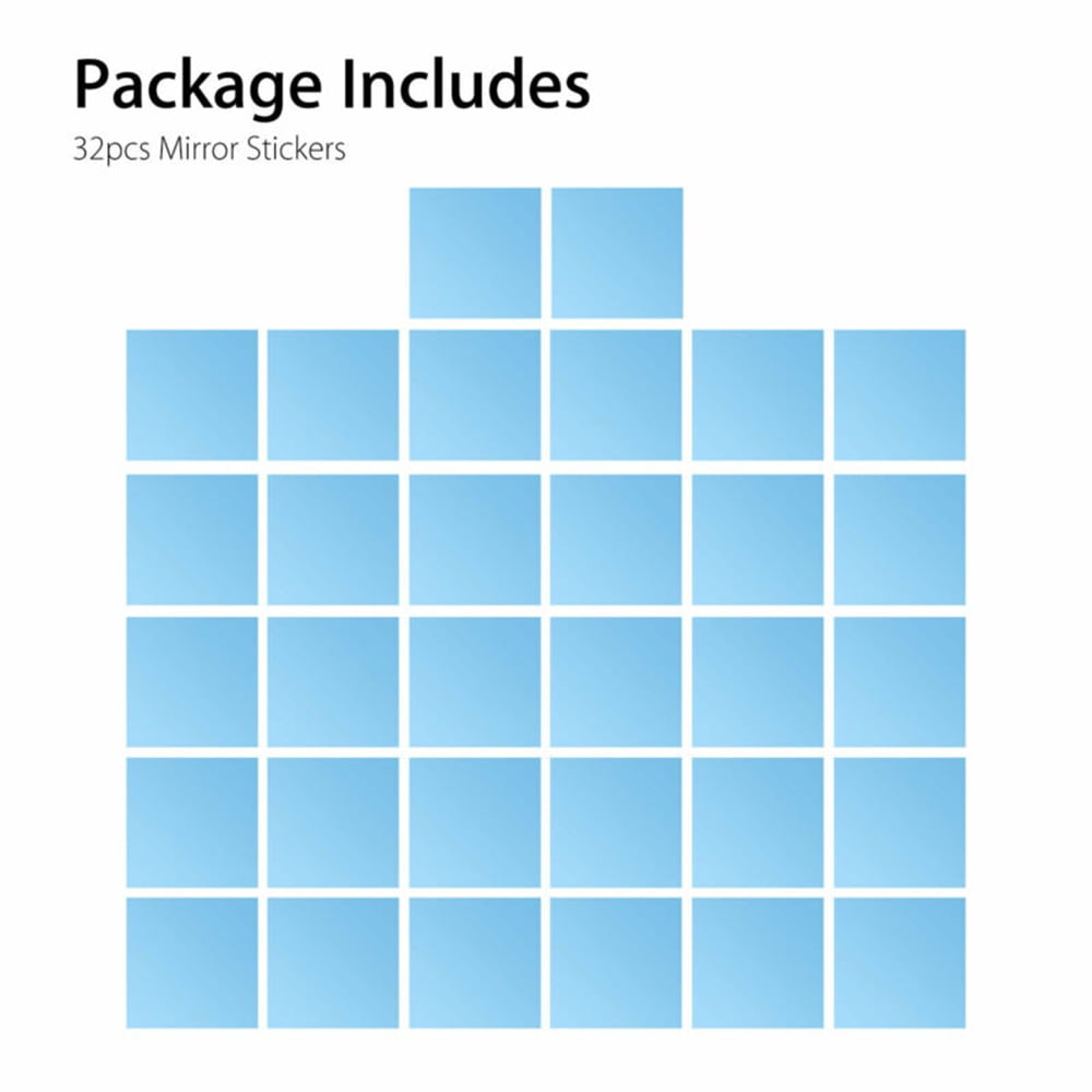 32Pcs Square Wall Mirror Tiles, Mirror Sheets Self Adhesive Mirror Tiles Wall Sticky Mirror Bathroom Decor Wall Stickers
