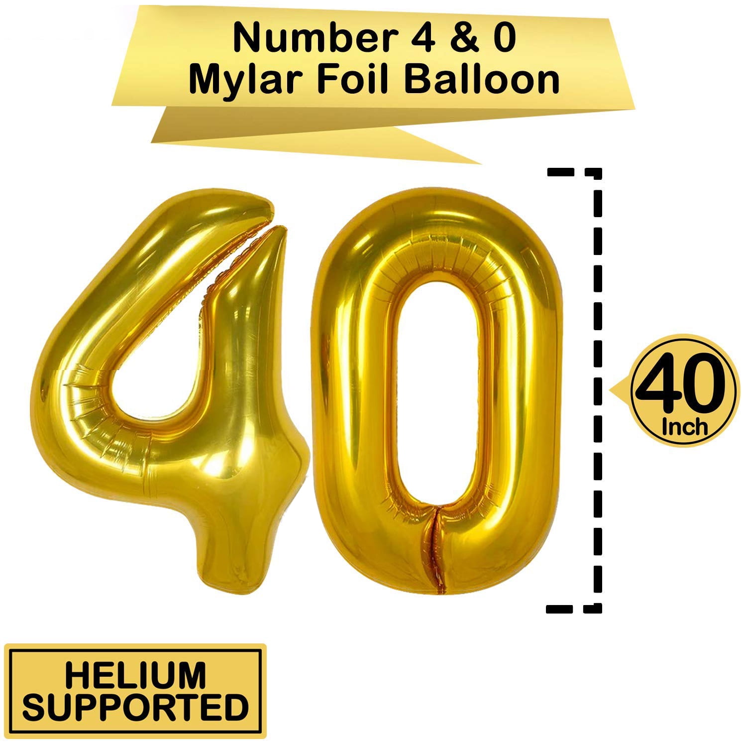 40th Birthday Party Decorations KIT – Happy Birthday Banner, 40th Gold Number Balloons,Gold and Black, Number 40, Perfect 40 Years Old Party Supplies