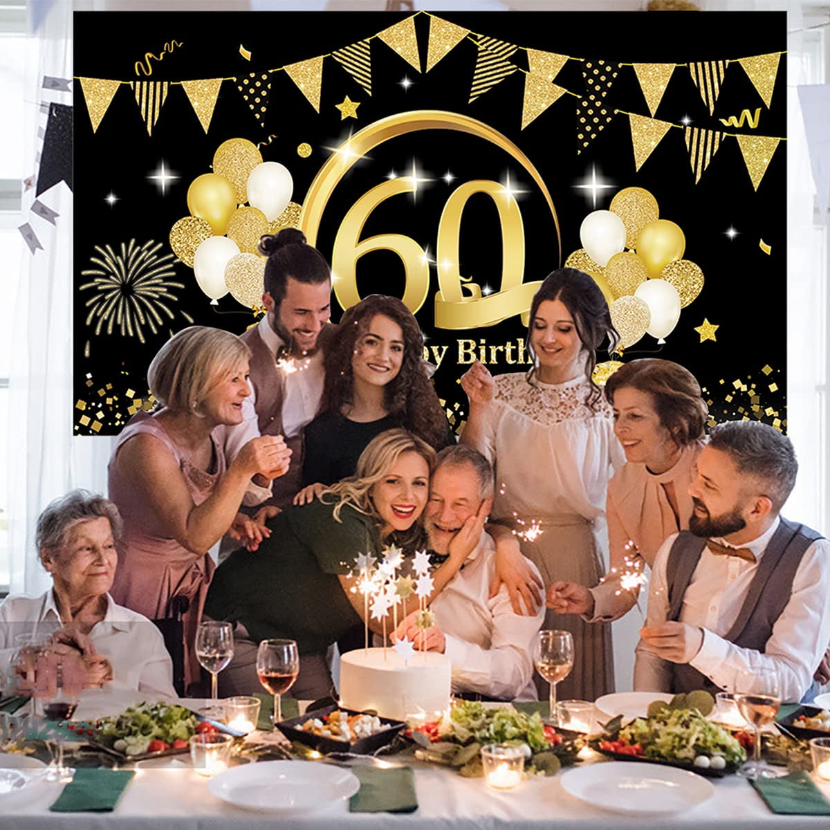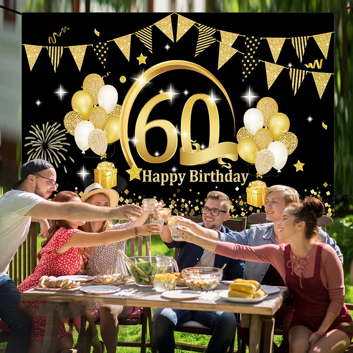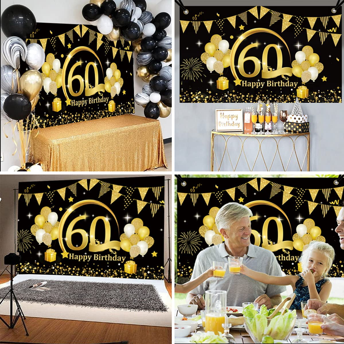 60th Birthday Party Decoration, Extra Large Black Gold Sign Poster 60th Birthday Party Supplies, 60th Anniversary Backdrop Banner Photo Booth Backdrop Background Banner, 70.8×43.3Inch