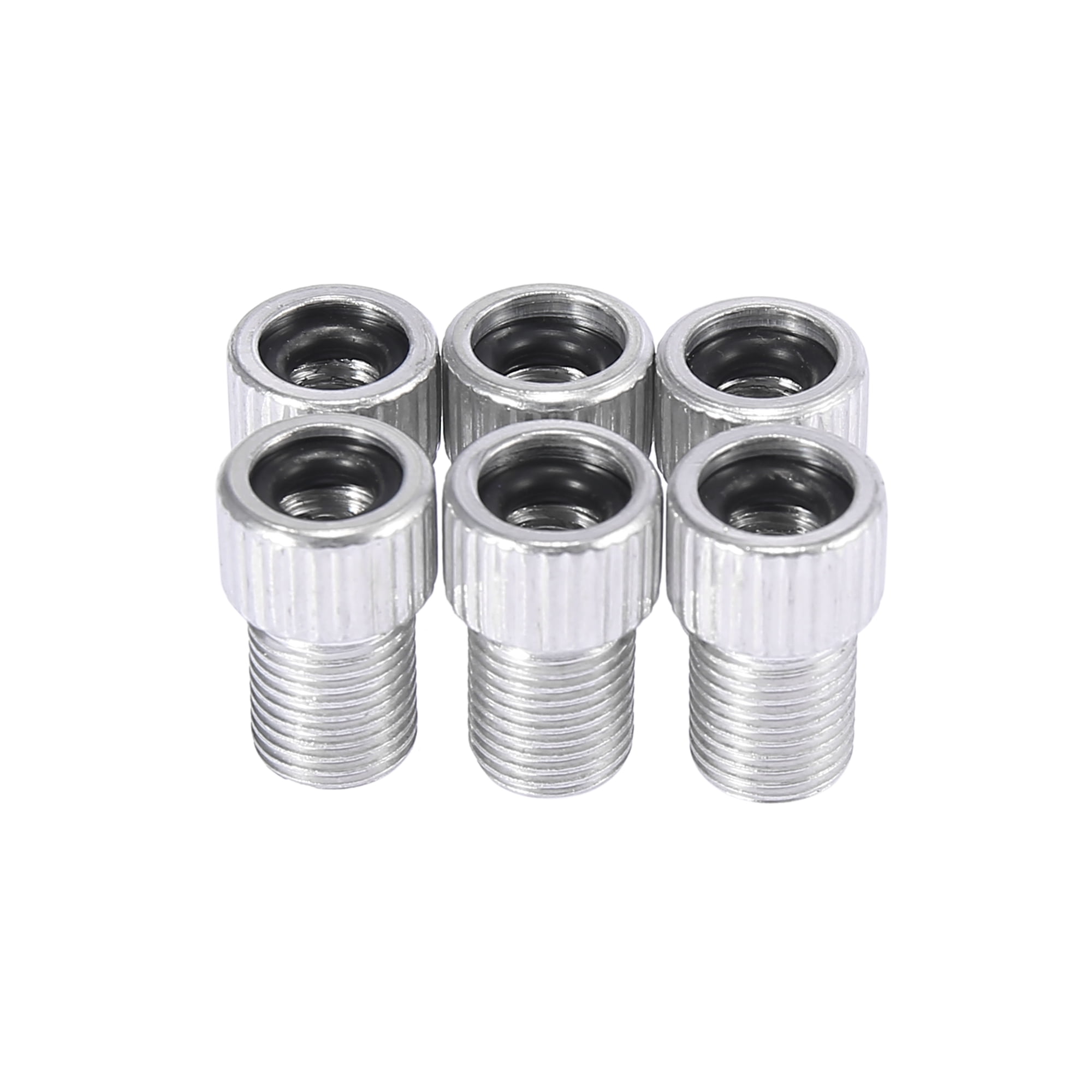6pcs Aluminum Alloy Bike Bicycle Pump Adapter for Bike Tire Inflator Air Pump Compressor Silver Tone