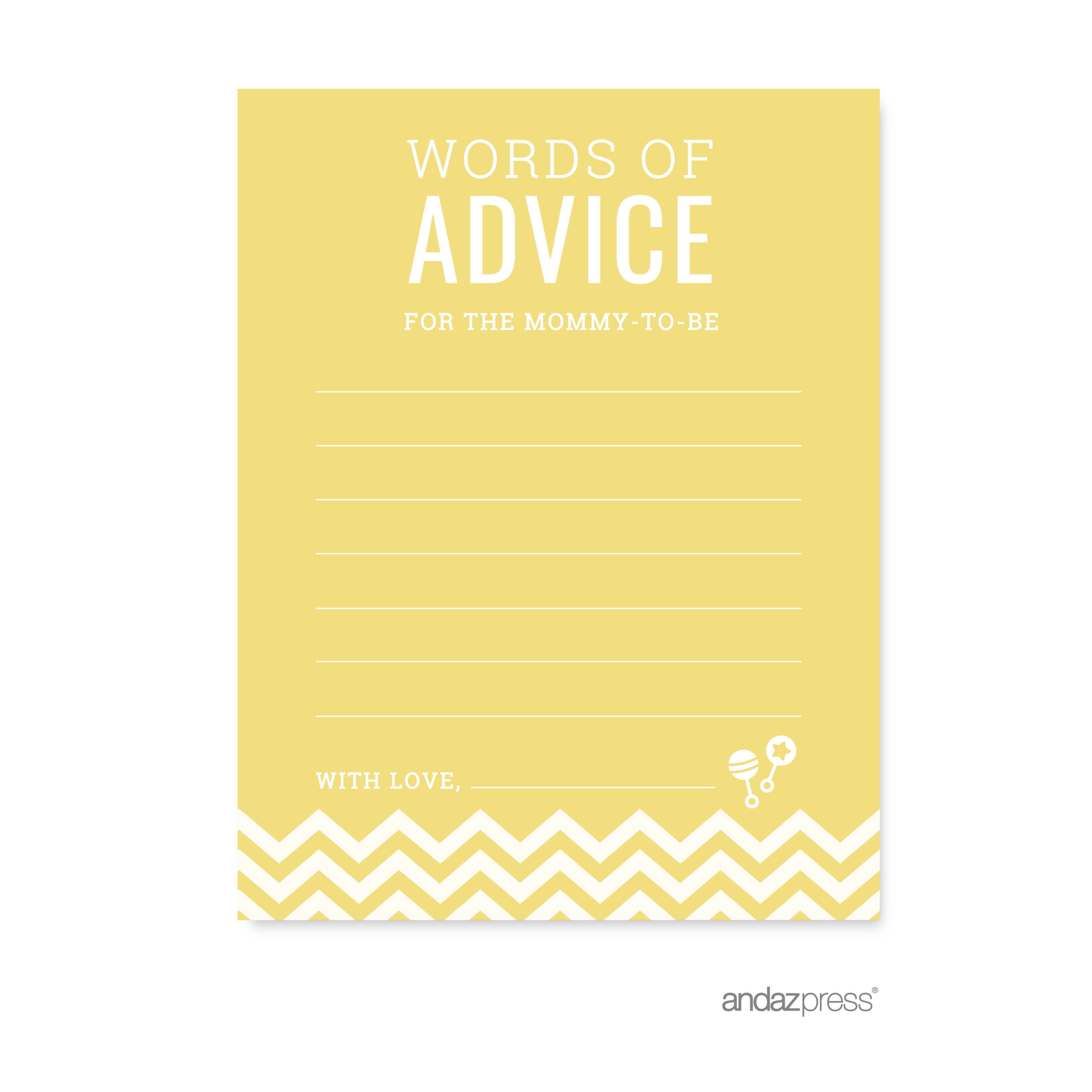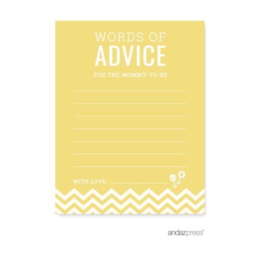 Advice Cards Yellow Chevron Baby Shower Games, 20-Pack