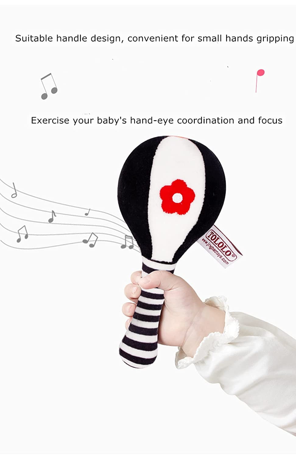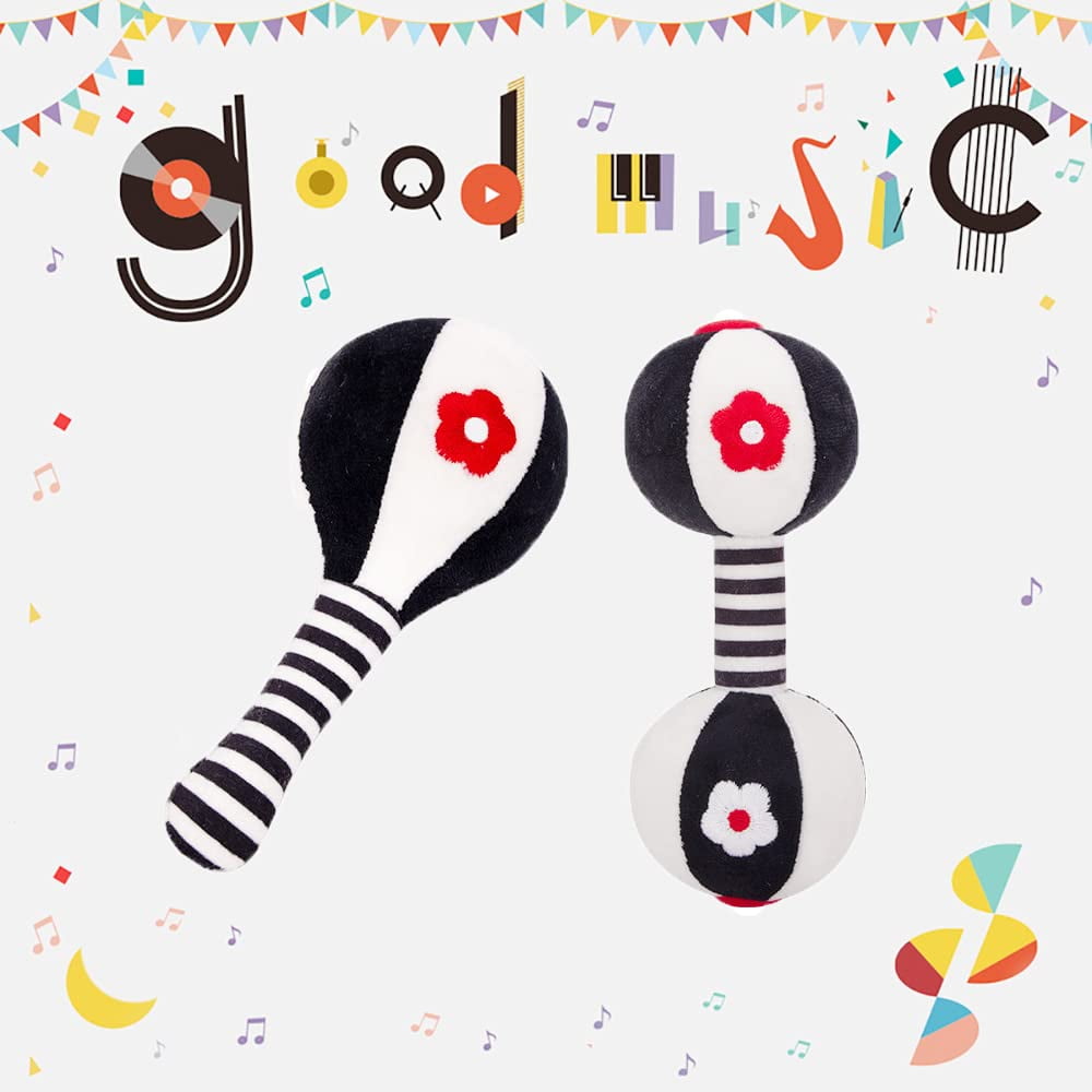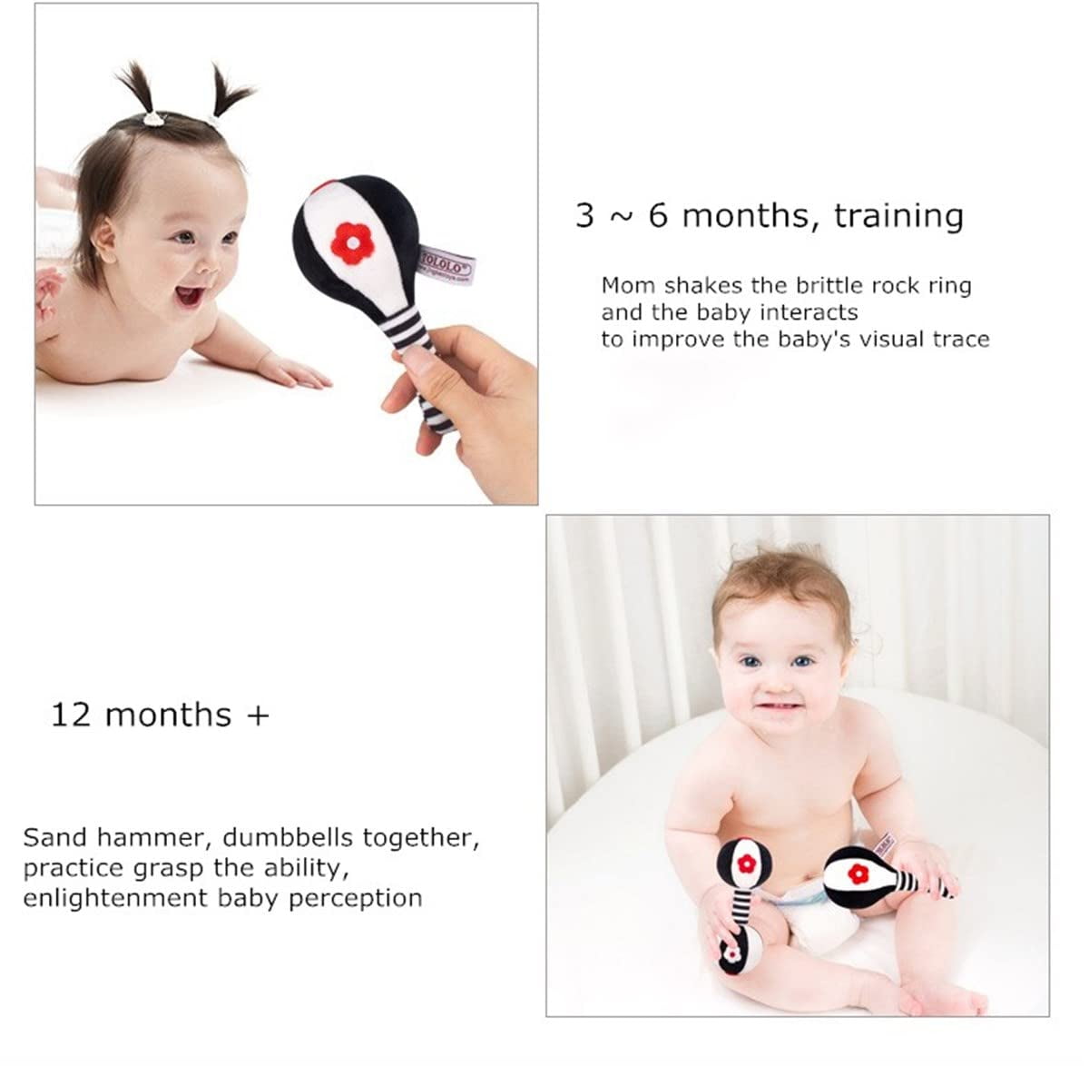 - Infant Rattle Advantage】Baby toys 0-3 months, black and white greetings, the contrast of black and white colors can attract the baby’s attention and stimulate the baby’s visual awareness of objects.3-6 months, follow-up training, mother shakes the crisp ringtone, interacts with the baby, and enhances the baby’s visual and auditory tracking ability.After one year old, play with sand hammers and dumbbells to practice grasping ability and enlighten the baby’s perception ability.