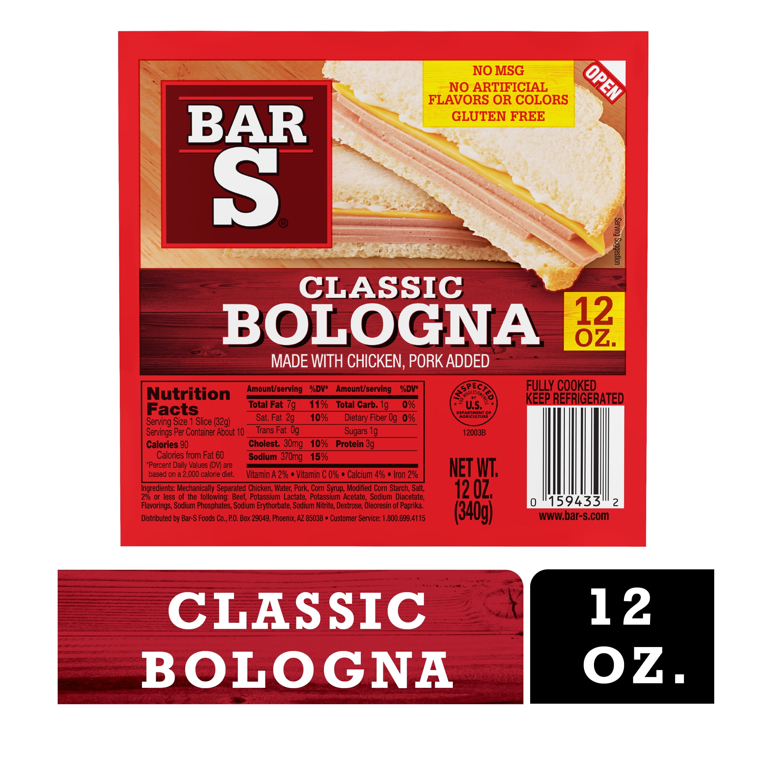 Bar-S Classic Bologna Sliced Deli-Style Lunch Meat, 10 Slices Per Package, 12 Ounce Pack