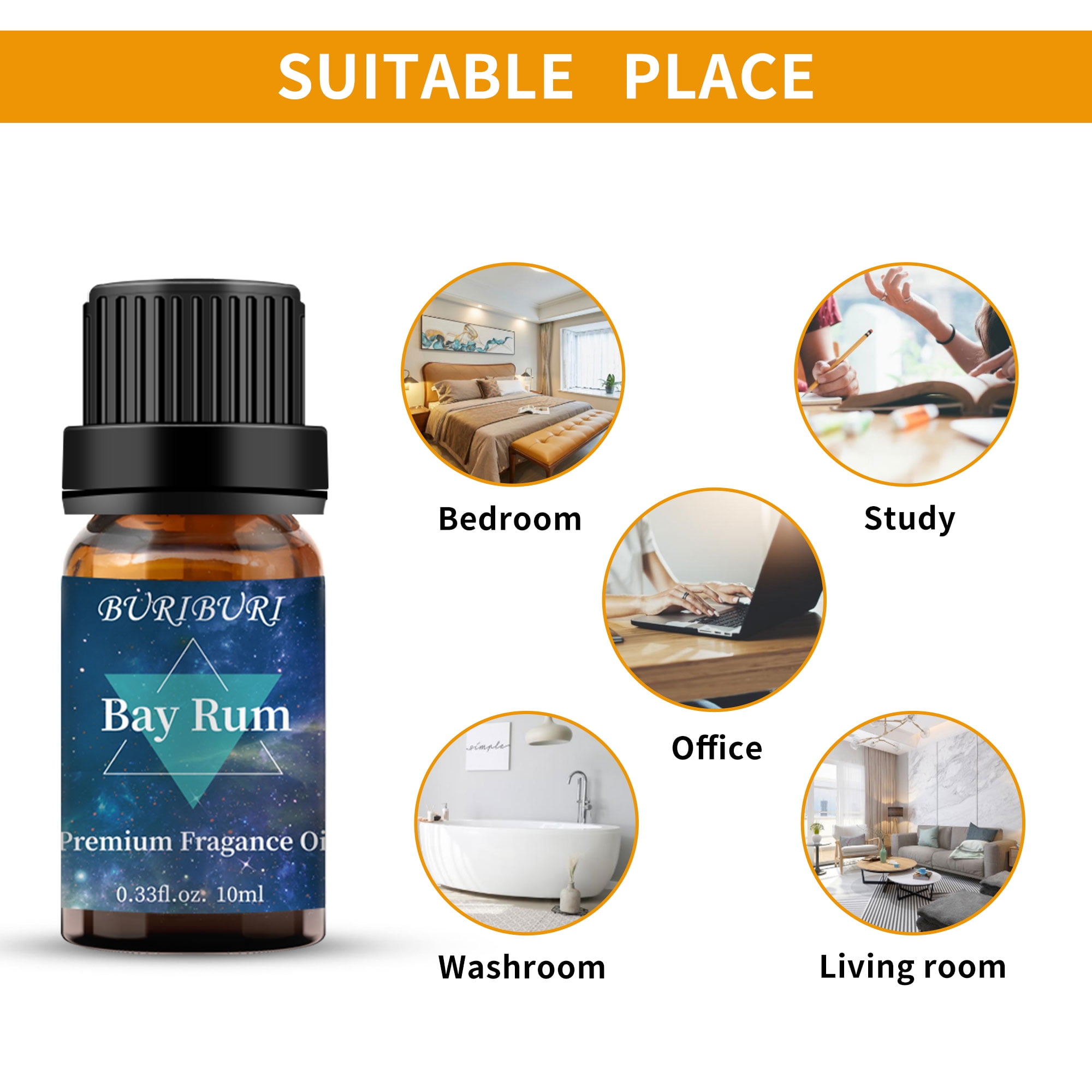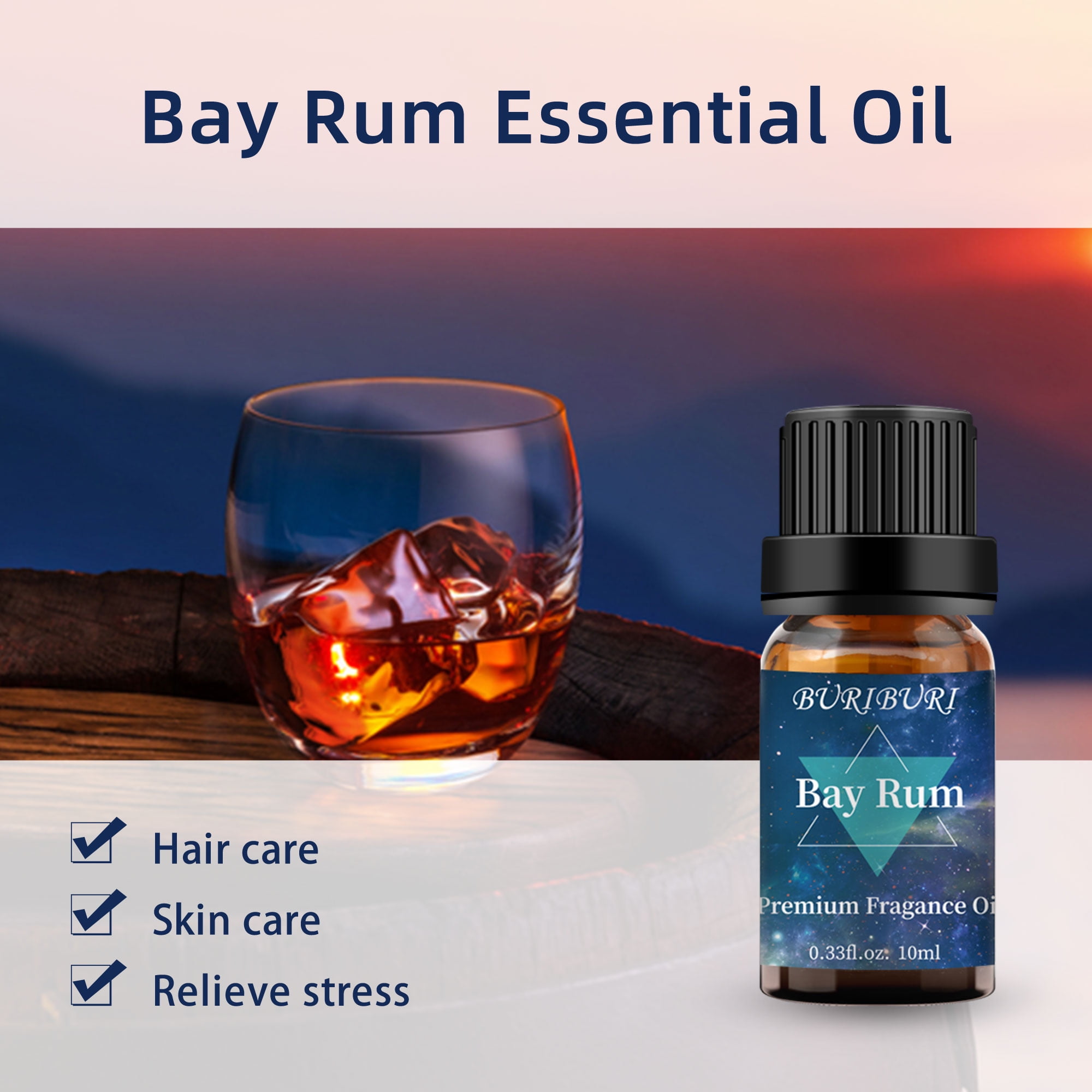 Bay Rum Essential Oil, 100% Pure and Undiluted, Natural Fragrance, For Diffusers, Athletes Care, Skin and Hair Care, DIY Scented Candle, 10ml Romantic and tropical scent