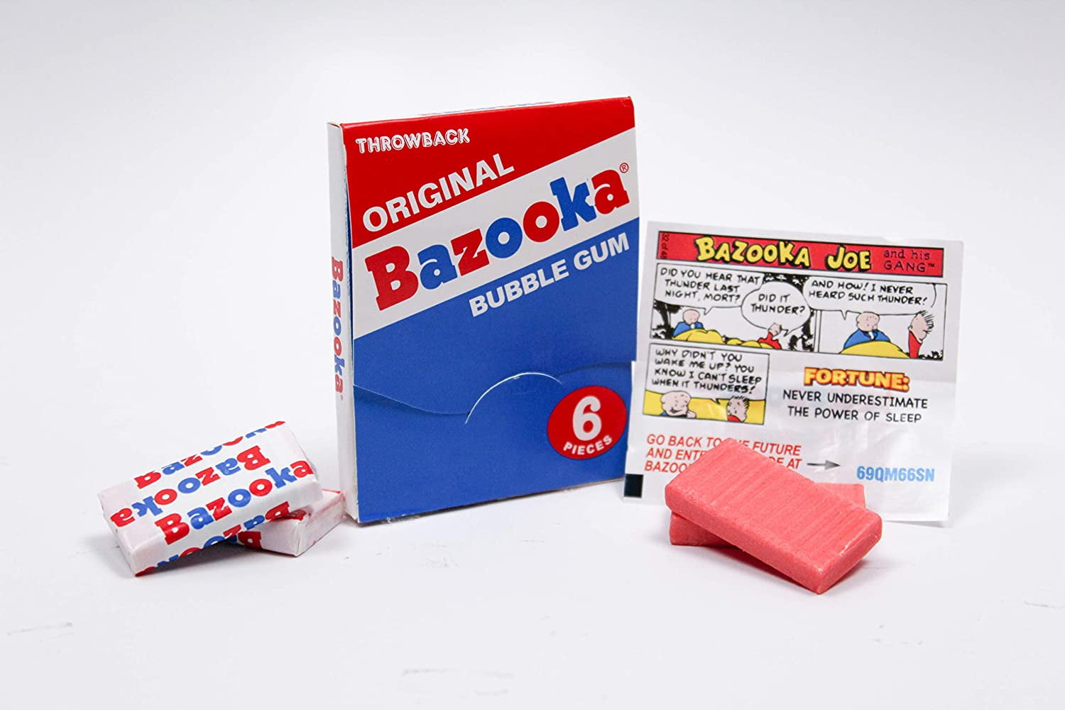 12 – 6 Piece wallet packs of Bazooka Bubble Gum in Bazooka’s signature original Bubble Gum flavor Shelf-stable gum makes a great pantry item – perfect treat to have around the house! Unwrap each chewy Chunk to enjoy the classic Comics from the brand’s heritage Great for kids and the whole family Bazooka Bubble gum’s iconic individually wrapped chunks come with Comics inside every delicious piece – now with classic throwback packaging!
