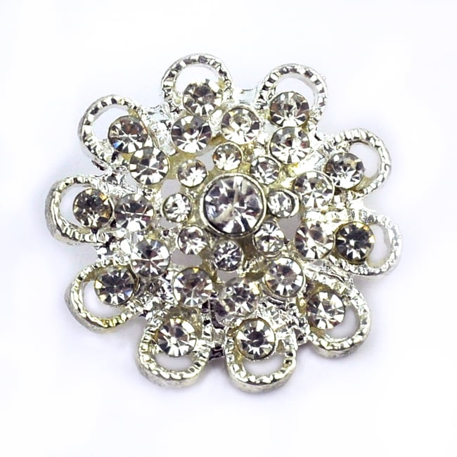 Belagio Rhinestone Lace Flower Button, Shank Button, Silver and Crystal, 1 Piece