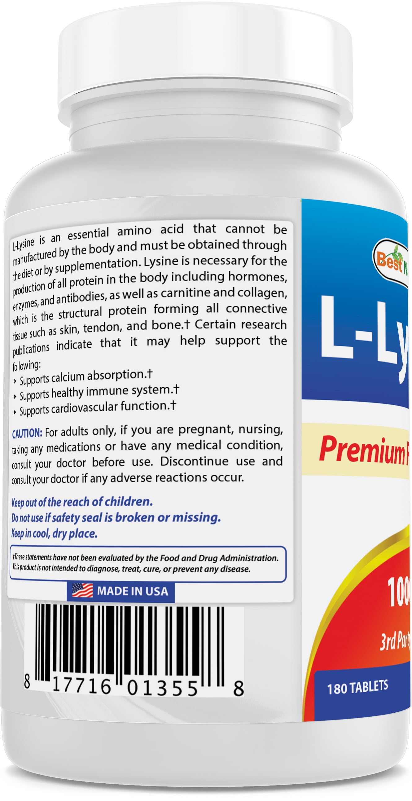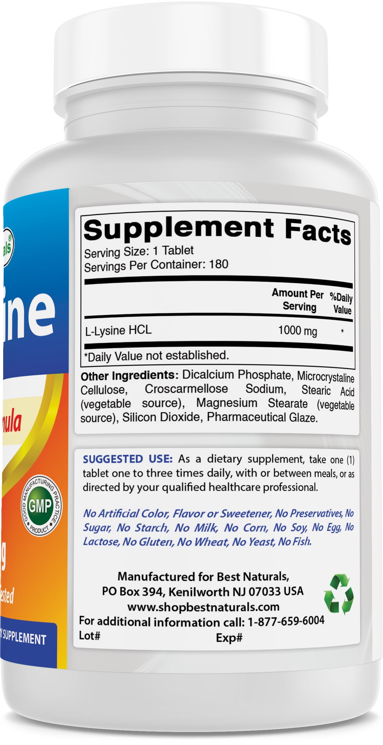 Best Naturals L-Lysine 1000mg, 180 Ct