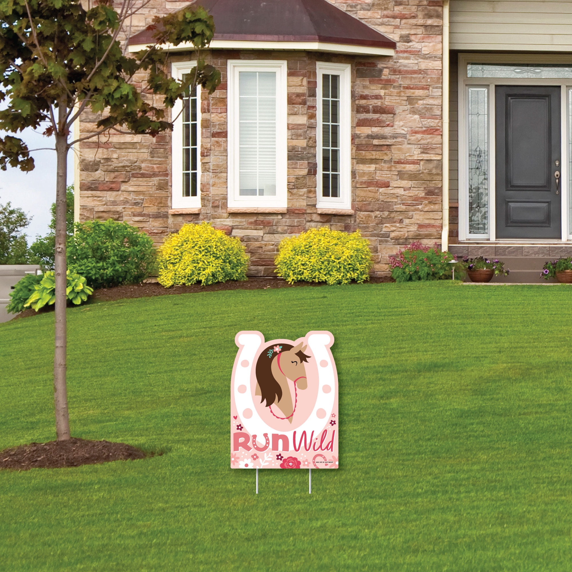 - Run Wild Horses Yard Sign INCLUDES: 1 weather resistant plastic sign and 2 sturdy stakes for displaying. Show off to neighbors and pedestrians when you add this eye-catching sign to your property.