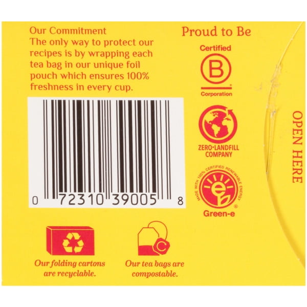 - 18 Tea bags, individually wrapped in foil pouches for peak flavor, freshness and aroma