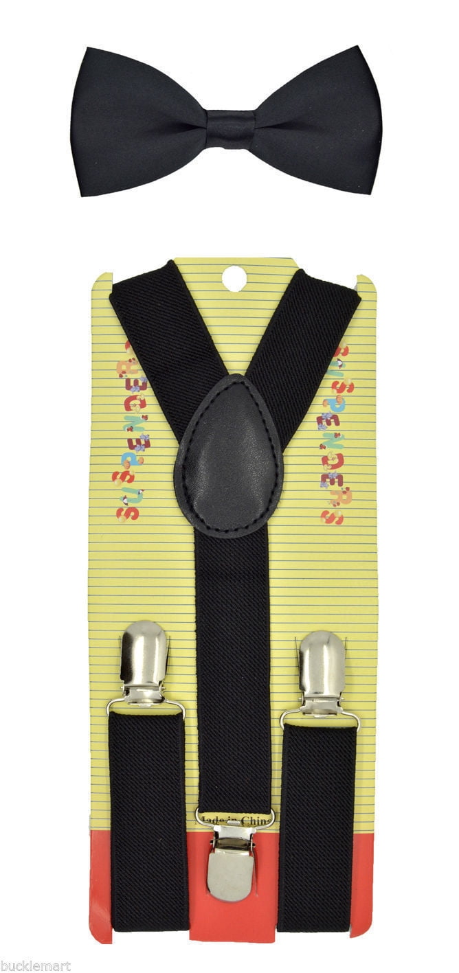 BLACK Toddler Kids Boys Girls Baby Suspenders and Bow Tie Matching Set Wedding